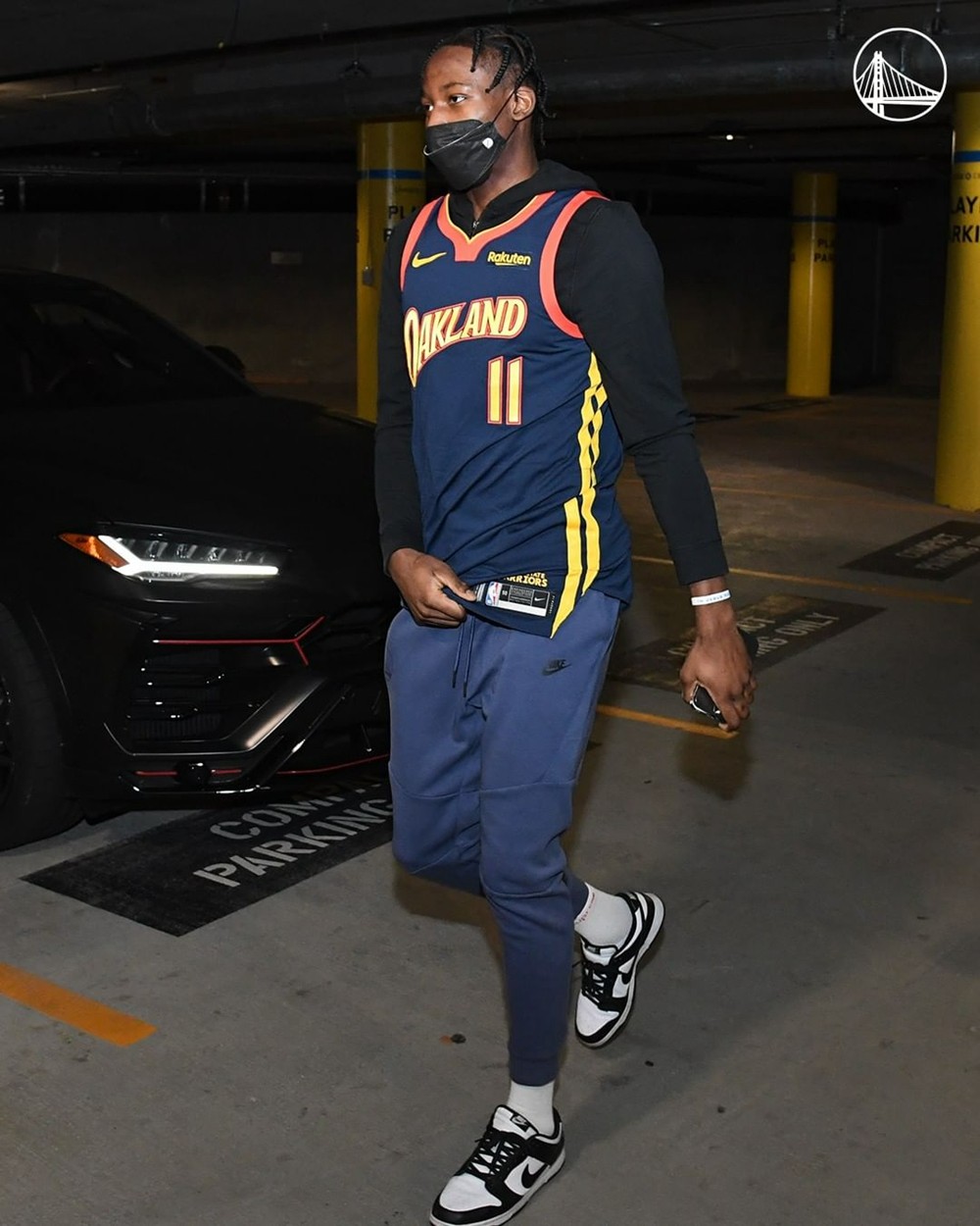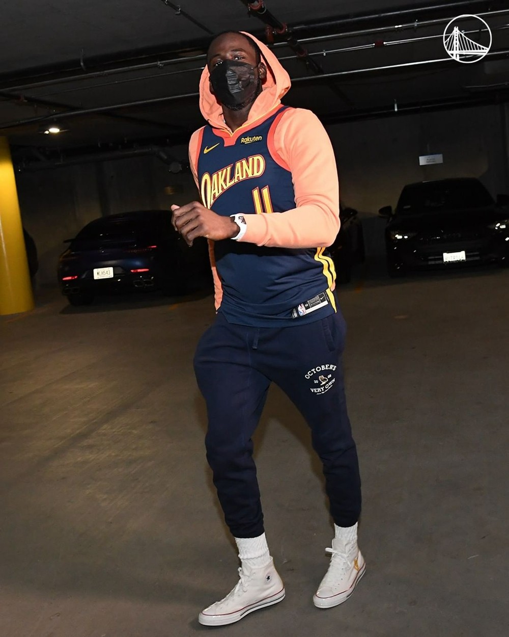 所以为了给「汤神」复出的首场比赛造势,勇士队全员都在今天入场时换上了汤普森的 11 号球衣。