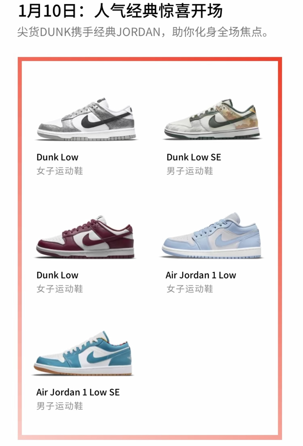 活动期间,Nike APP 会在每天中午 12 点更新产品以及相关产品页面,带来不同产品更多选择。