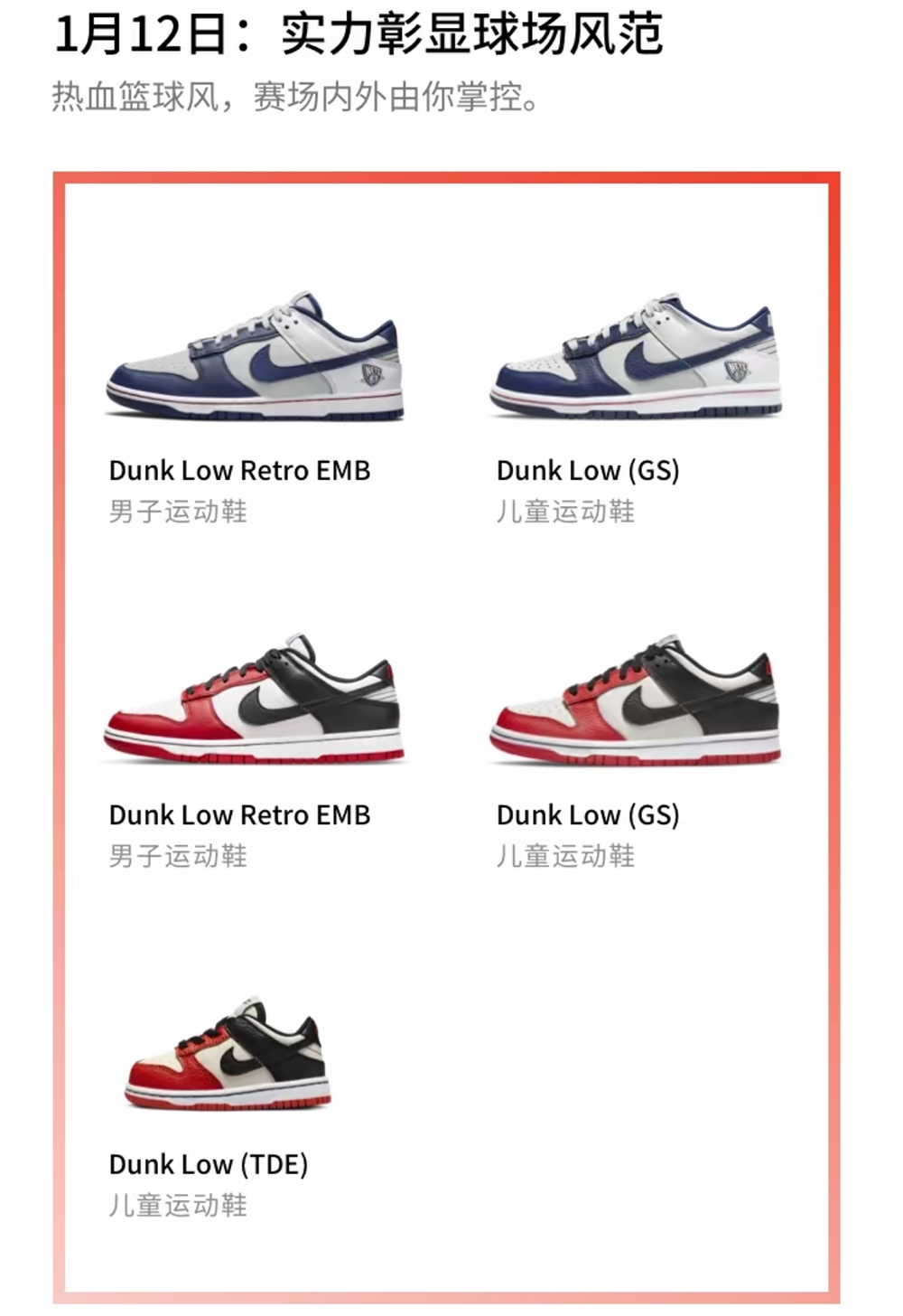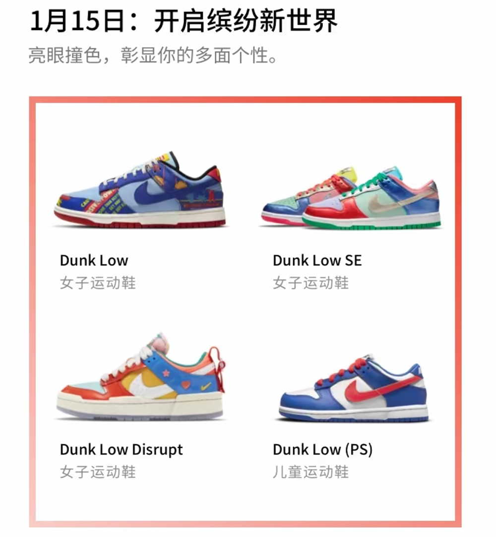 今天中午 12 点正式发售了 5 款 Dunk Low。
