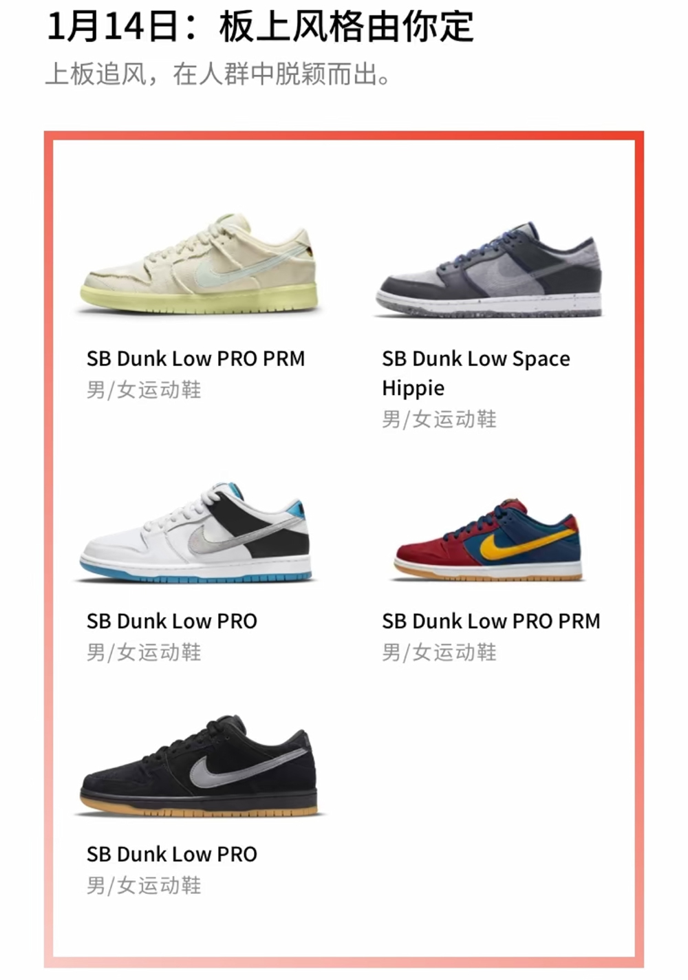 每天的主题都不相同,鞋款方面也含括了 Air Jordan 正代、Dunk、Dunk SB 以及 Stussy 联名、NOCTA 系列。