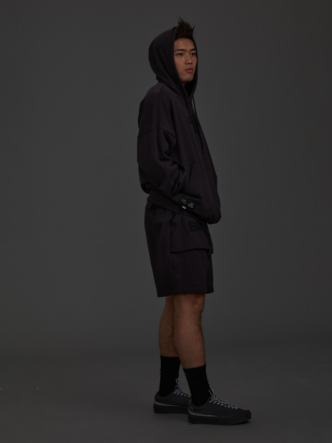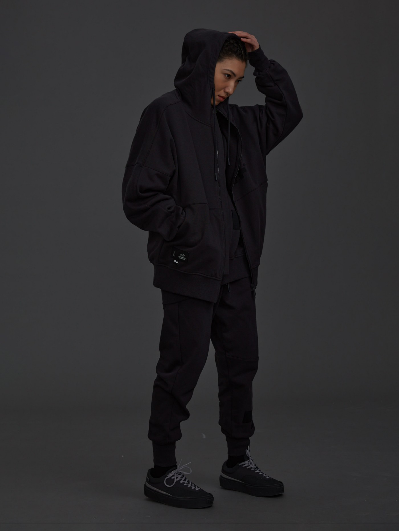 简约百搭的卫裤采用拉链设计,街头味儿十足。