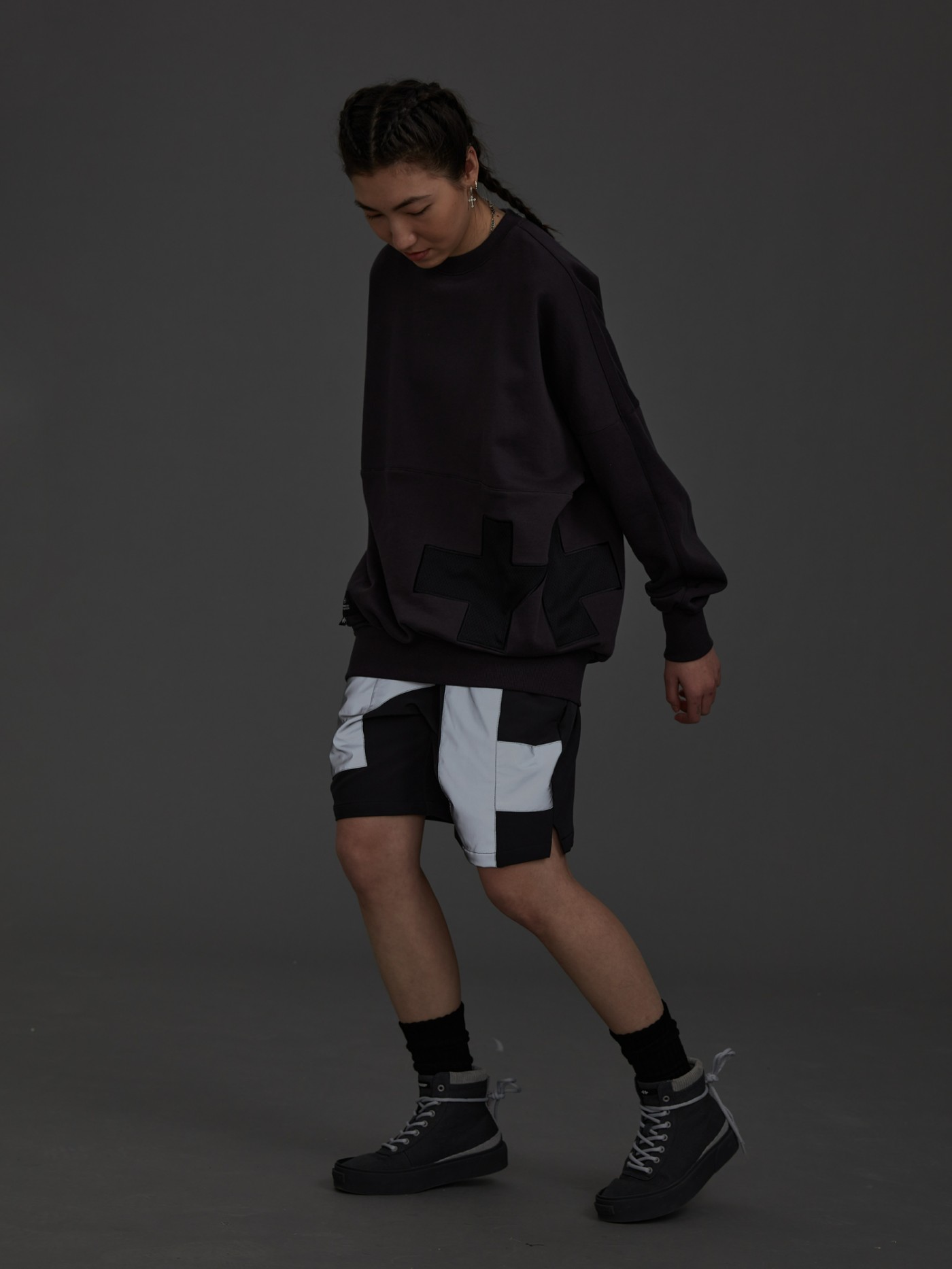 整体设计语言兼容篮球场上、场下场景,宽松随身的剪裁,不仅可以在运动时的穿着,也可以在日常生活中进行搭配。