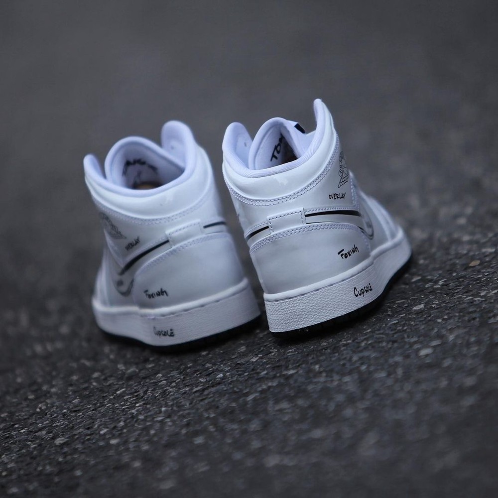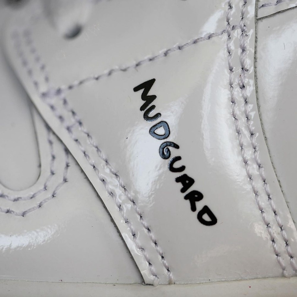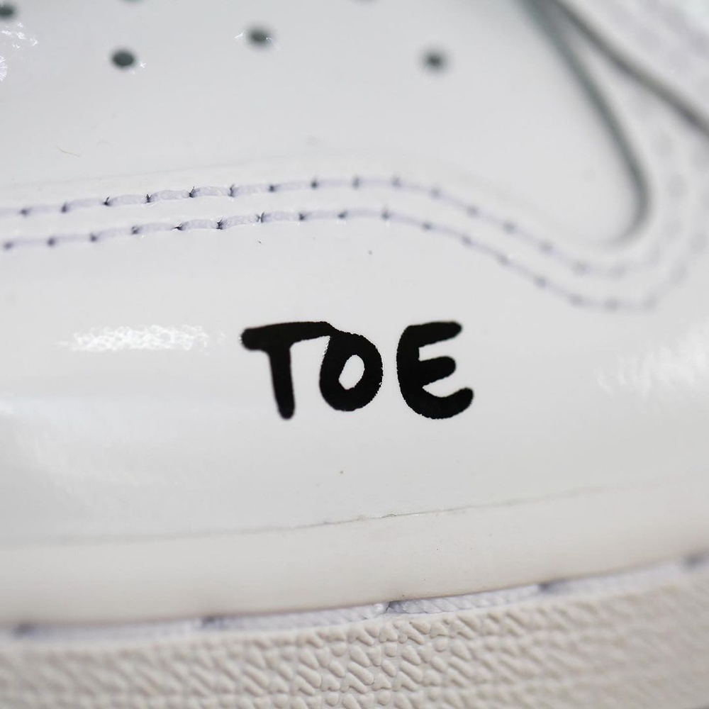 整双鞋面采用全漆皮材质打造,纯白色的鞋身加上涂鸦风格的字体和图案做点缀。