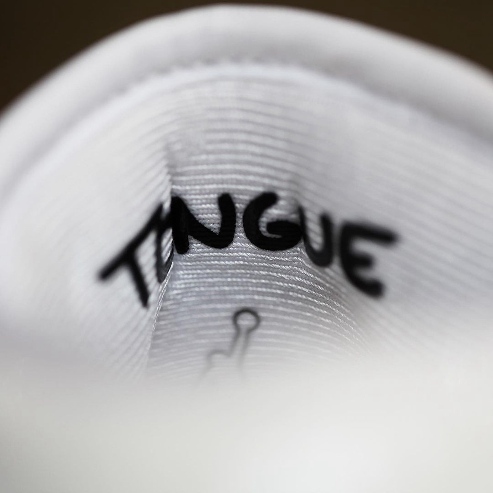 涂鸦风格的字体不仅出现在鞋面上,在鞋舌内也有同样风格的 “TONGUE” 字样。