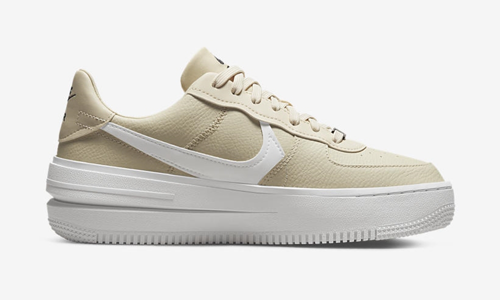 这次全新的 Air Force 1 PLT . AF . ORM 共发布了两款颜色,白色款式更纯粹更能体现出这鞋型的经典元素,而卡其色鞋面搭配白色 Swoosh 这款则是提供了更多的色彩层次感。