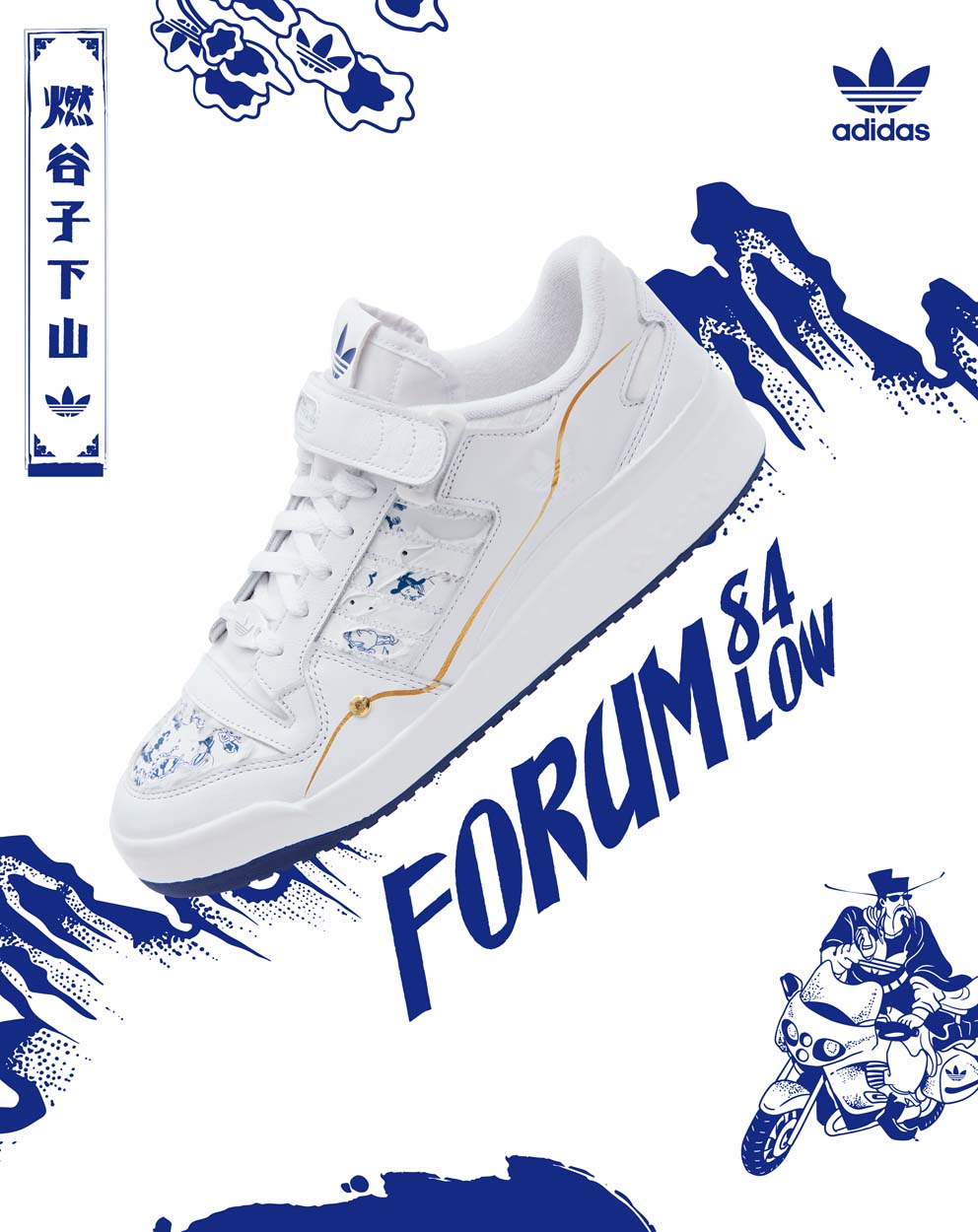 近日,adidas Originals 携手陶瓷艺术家易燃,融合街头⽂化与艺术视⻆,以国宝元青花大罐《鬼谷子下山》为灵感来源,推出「燃谷子下山」限定系列。