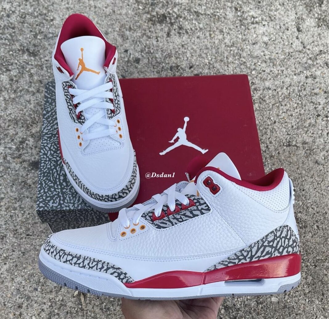 近日,一款酷似白红配色的 Air Jordan 3 实物再次曝光,相信一定可以俘获无数潮流玩家的心。