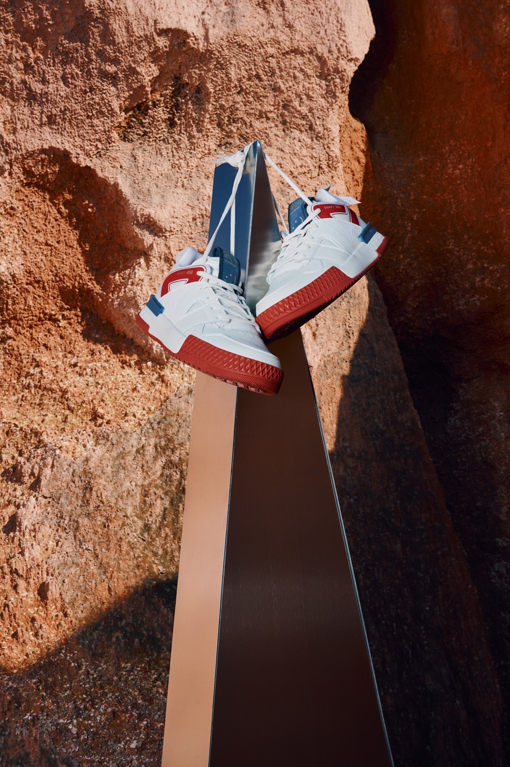 翻毛皮搭配织物打造鞋面,呈现出浓郁复古气息。同时双层鞋带系统带来前卫视觉风格。