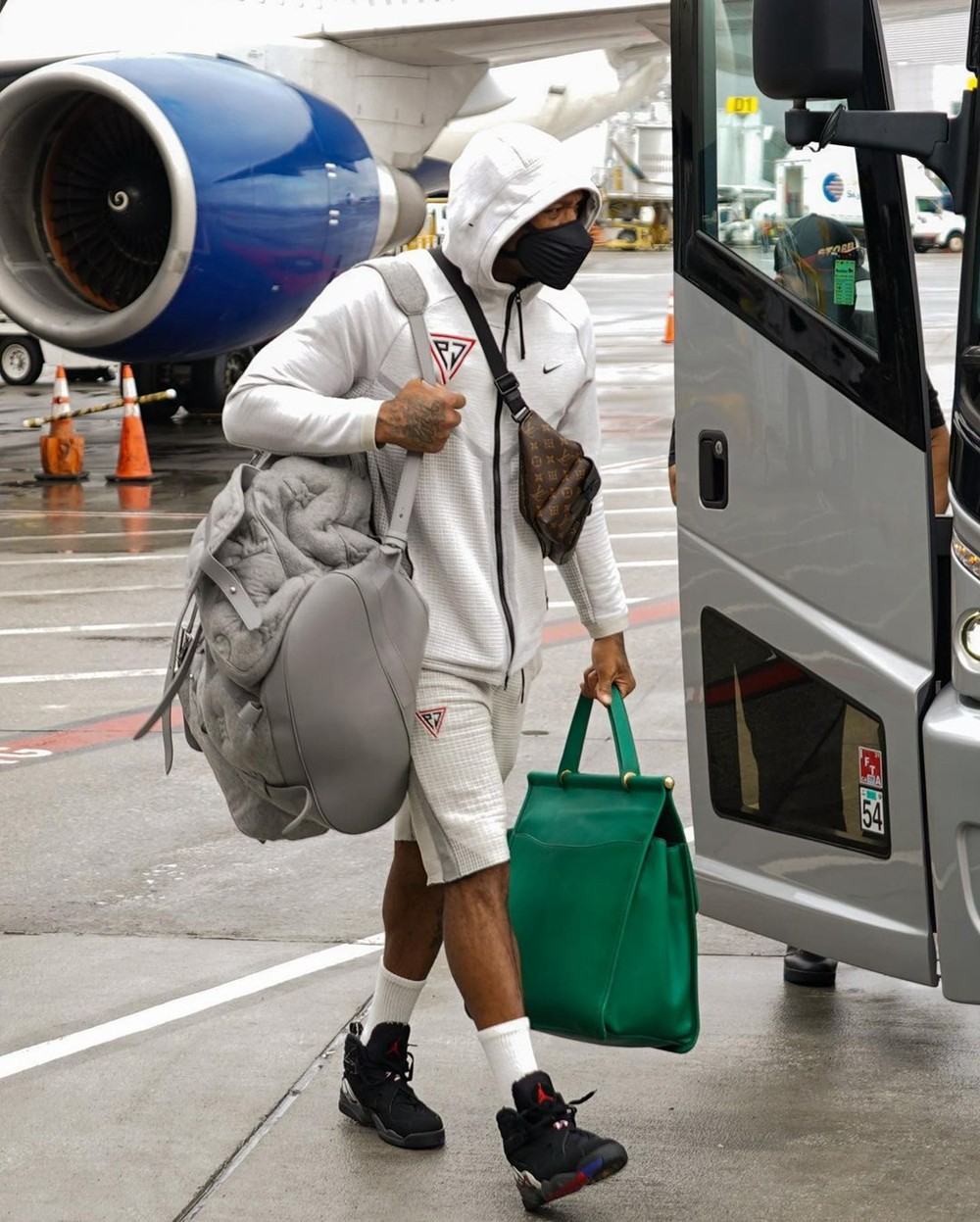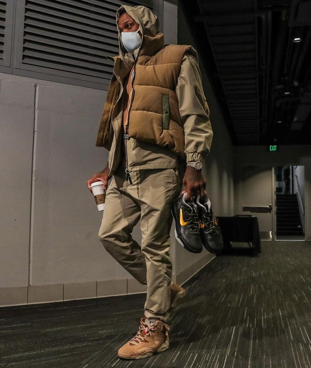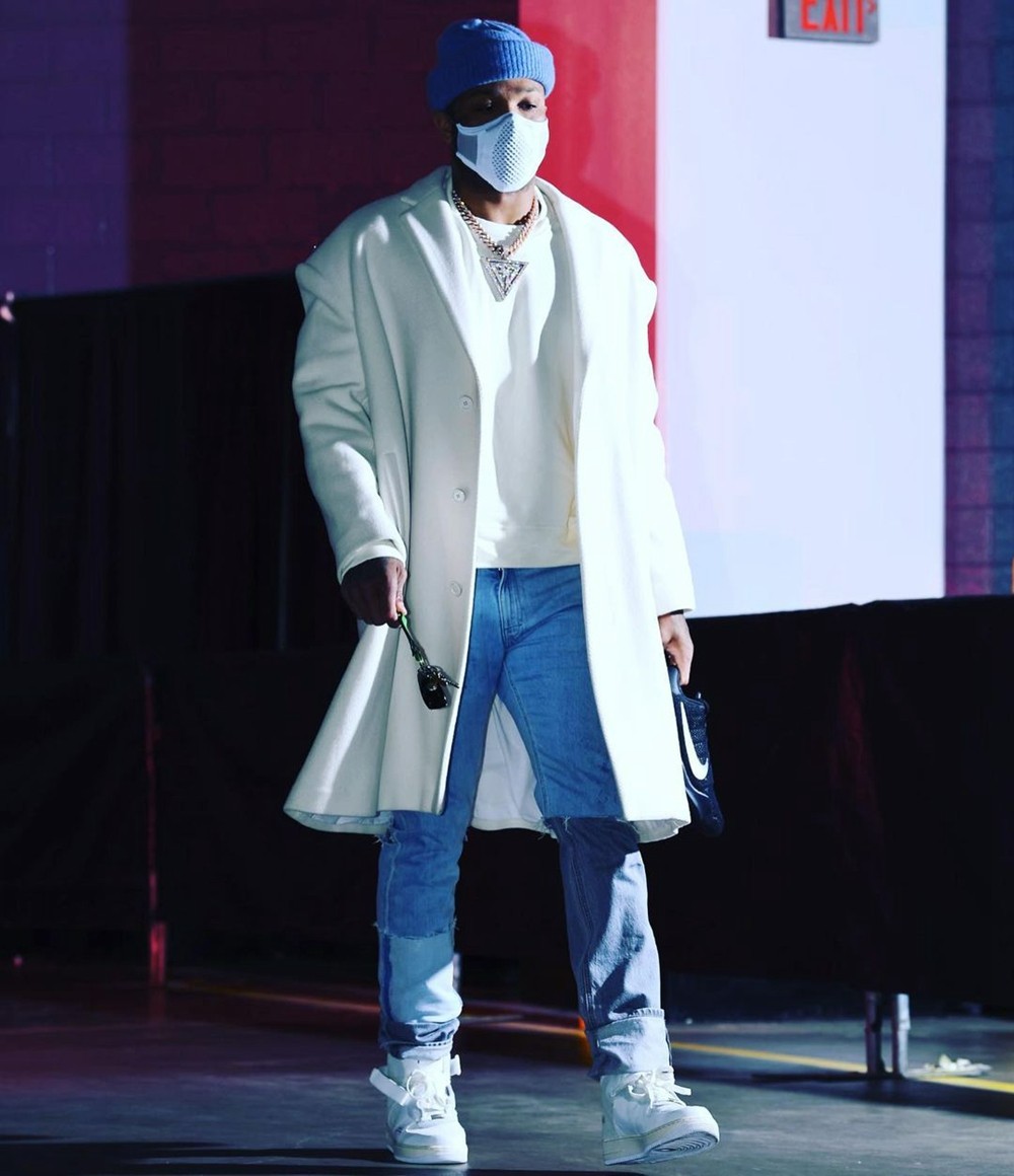 在 Virgil 离世后的第一场比赛,塔克上脚 OFF-WHITE x Air Jordan 5 表达缅怀之情。