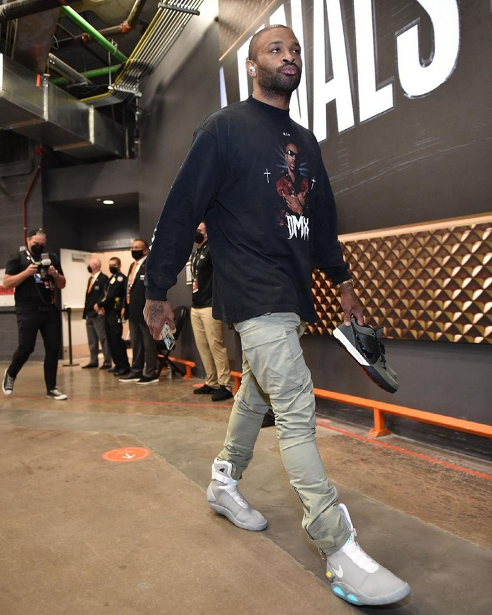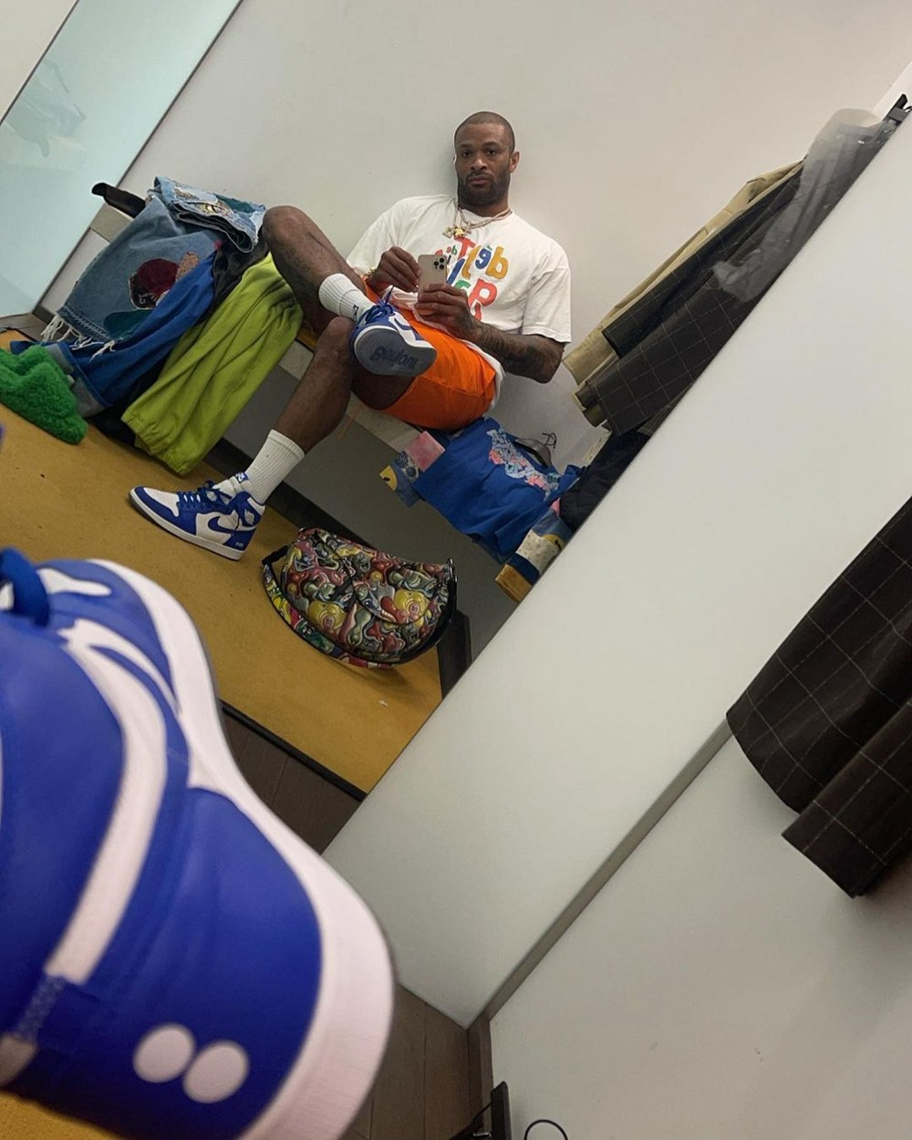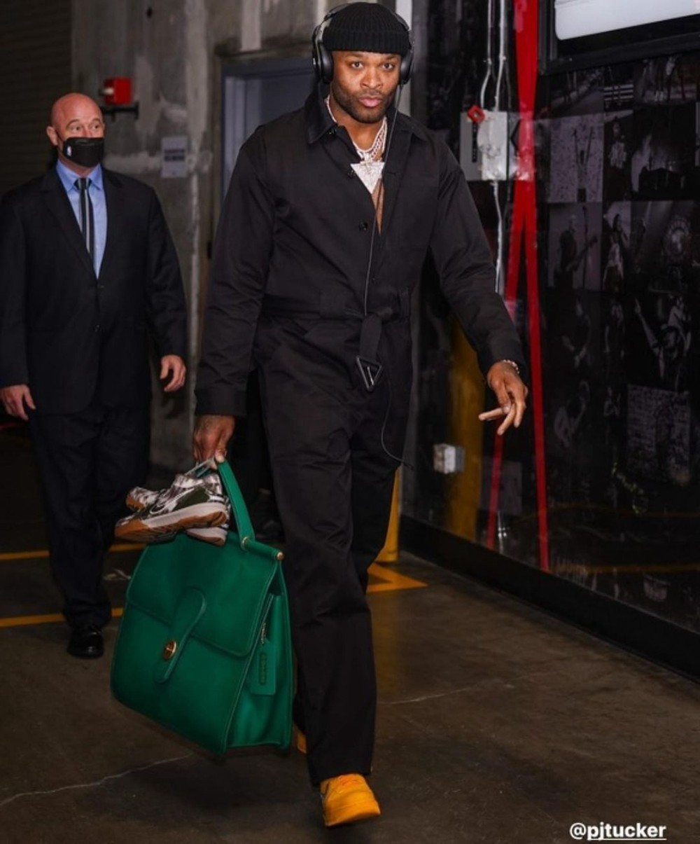 今年夏天,塔克跟随雄鹿收获冠军后,以自由球员身份加盟热火,随机在媒体定妆照上脚一双为歌手贾斯汀·汀布莱克打造的亲友限定 Air Jordan 1 “Legends of Summer”。