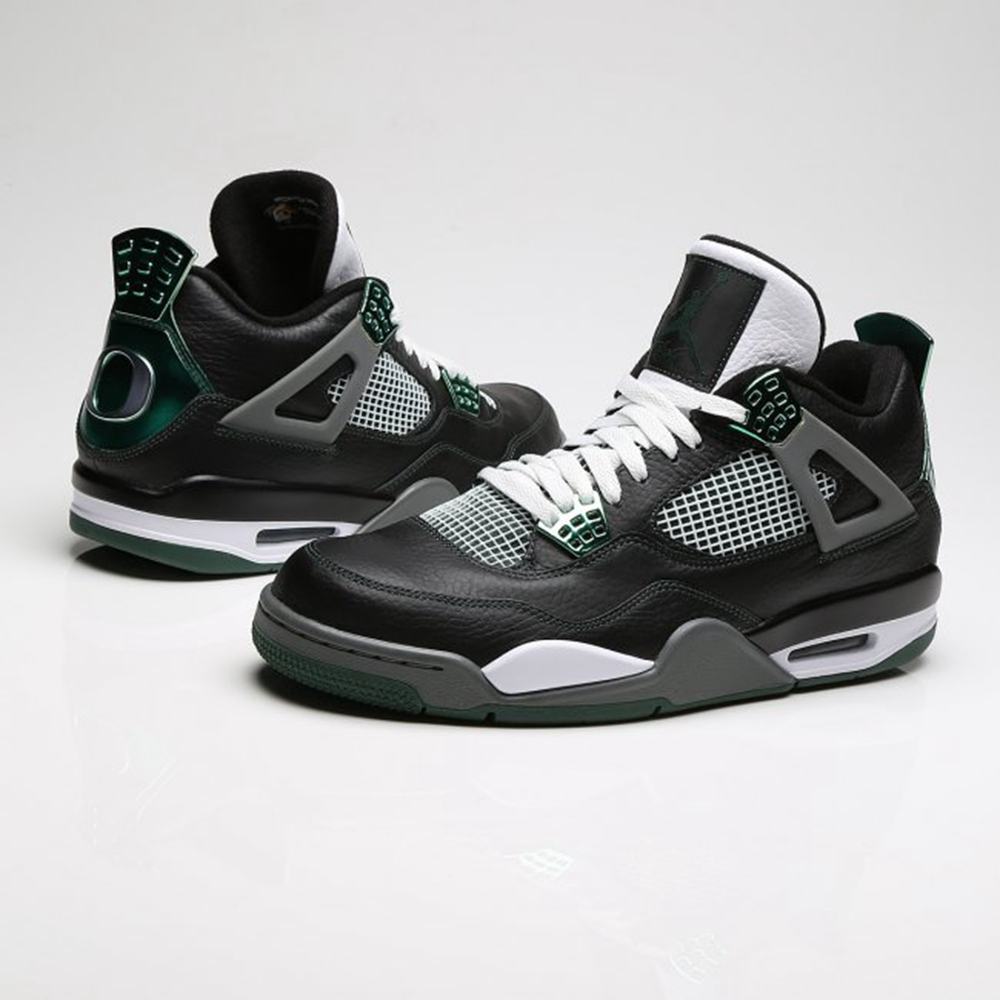 Air Jordan 4 PE “俄勒冈” 应该是所有俄勒冈 PE 中最为低调的一双,仅仅在鞋带扣处增加电镀绿色,其余均为黑色和白色打造,酷似天价的阿姆 Air Jordan 4