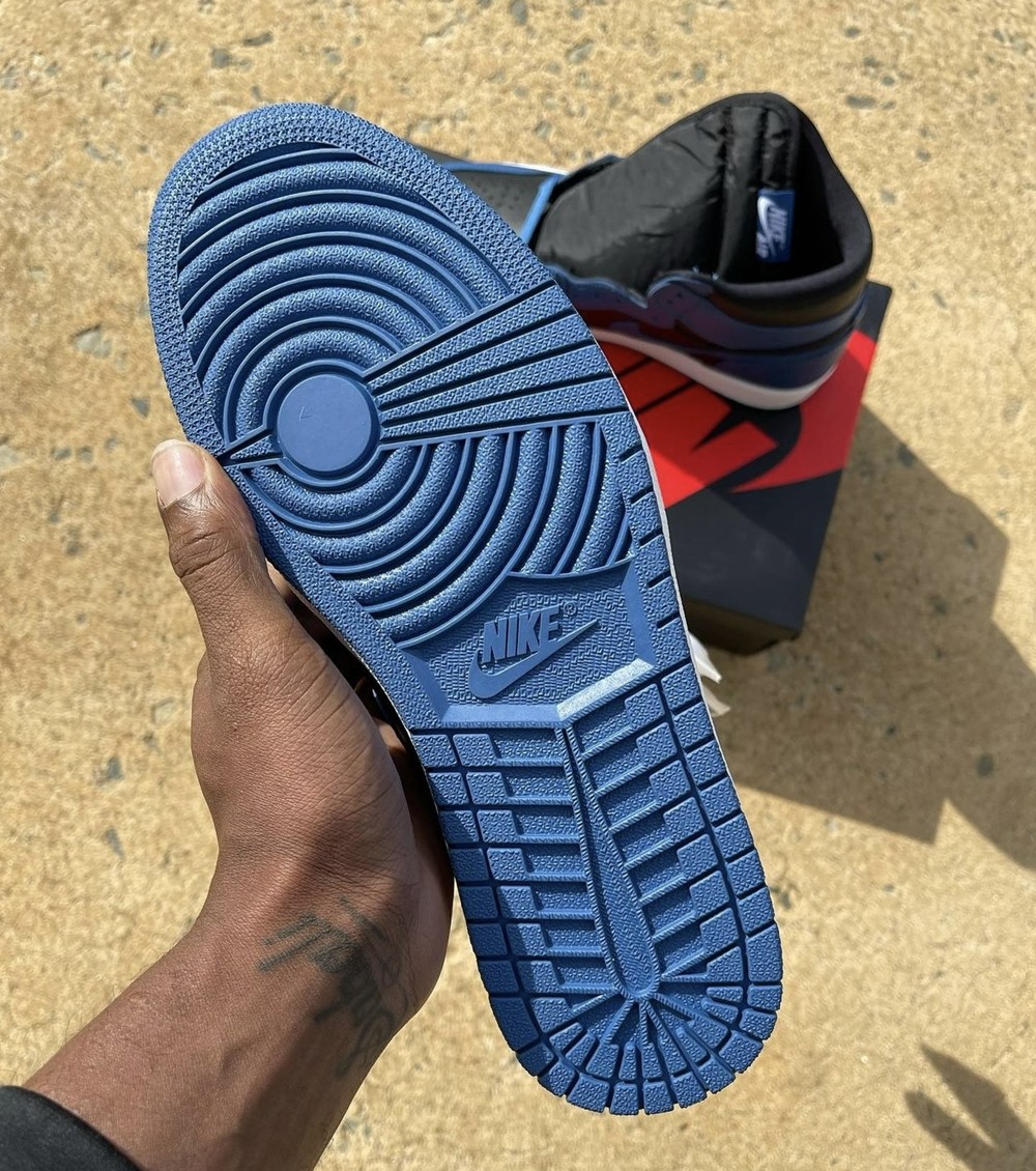 整双鞋采用了最被熟知的 Air Jordan 1 为基础打造,并以十分经典的黑蓝双色呈现,视觉效果像极了经典的「皇家蓝」Air Jordan 1。