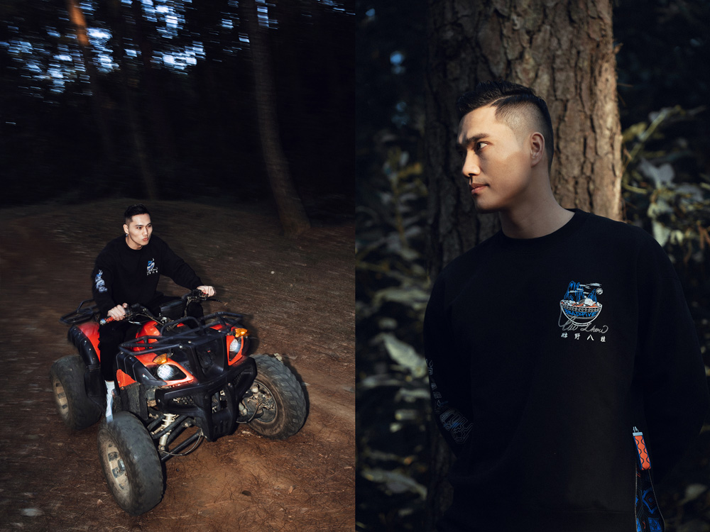 其他几款卫衣融入广西特色螺蛳粉、壮纹等元素,并且有侧拉链等特别设计。
