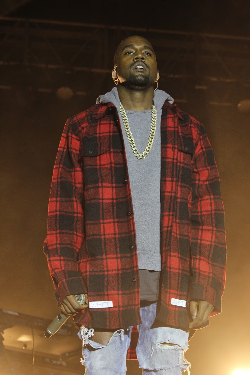 ▼ Kanye 曾在演唱会上身 Off-White™ 格纹衬衫