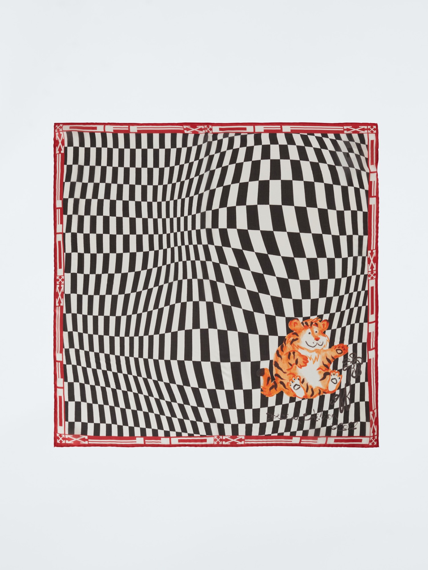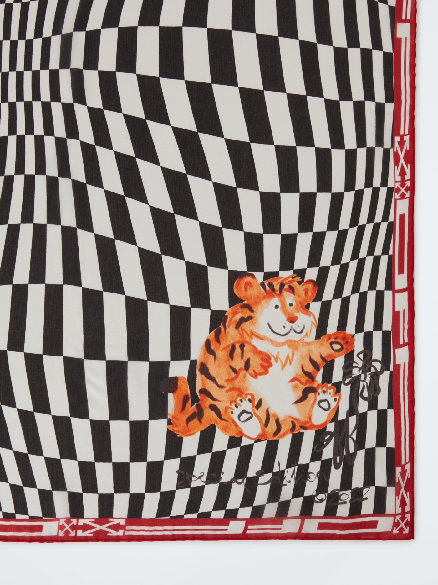 同样点缀有小老虎限定图案的单品还有棋盘格丝巾,变形的棋盘格就是该系列的第三大全新元素。