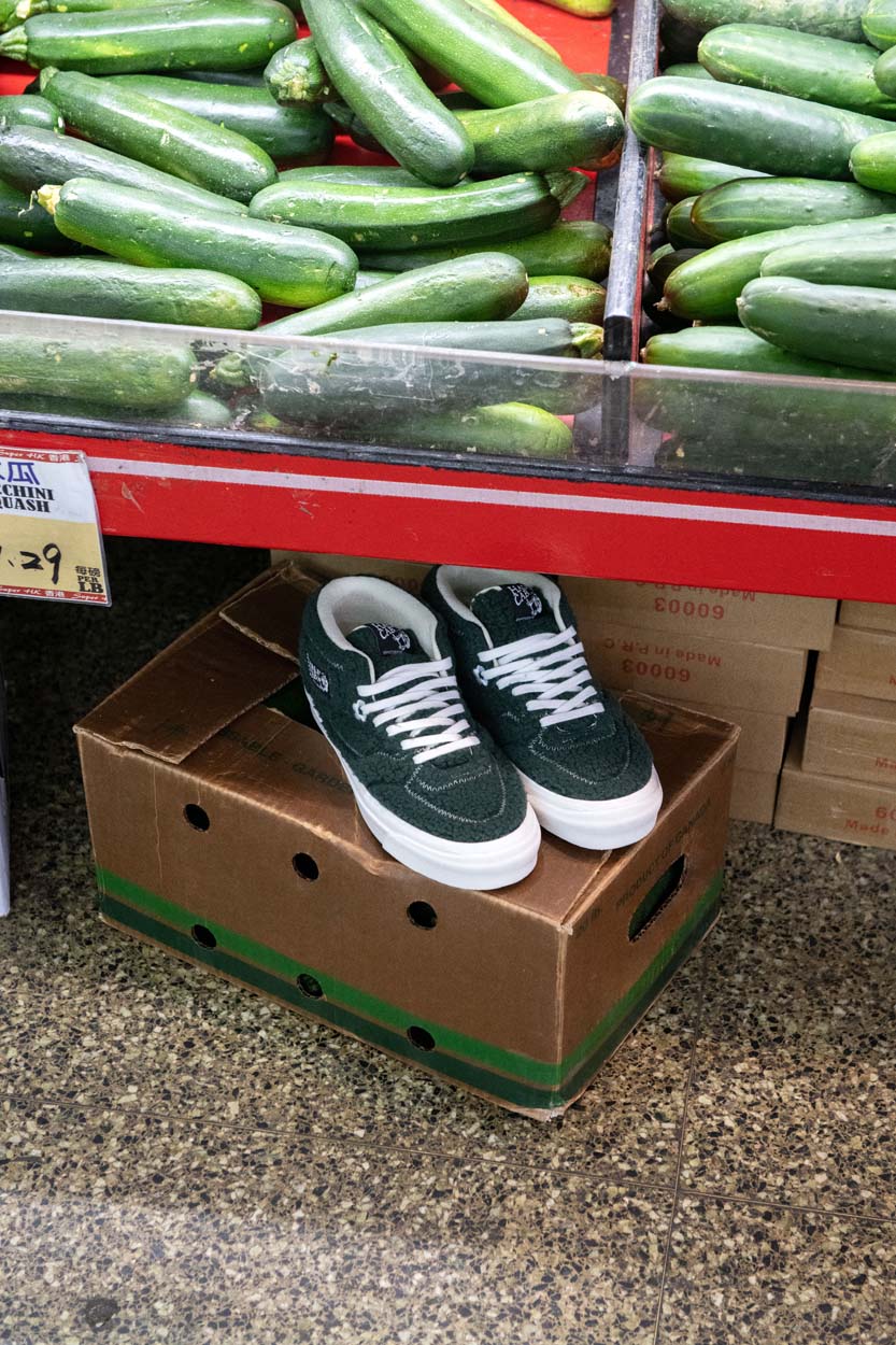 最后一双 Half Cab 33 DX 采用绒毛材质,鞋带孔点缀花朵图案,鞋面白色车线增添设计细节。