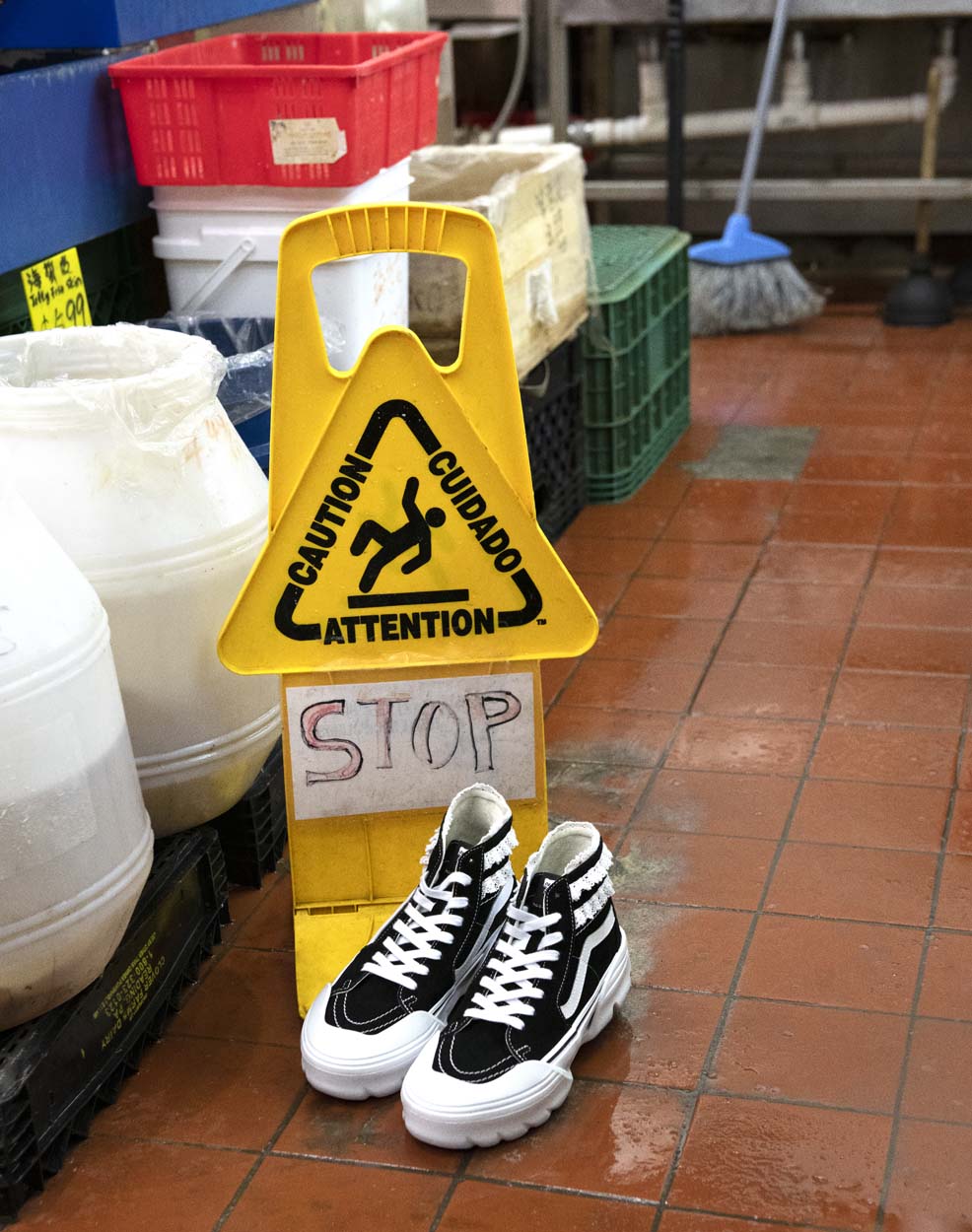 还有一双 Sk8-Hi Tapered Modular 以黑色为主调,鞋领口处点缀白色蕾丝镶边,配备可拆卸的厚橡胶外底带来增高效果,以材质混搭呈现出年轻大胆的搭配理念。