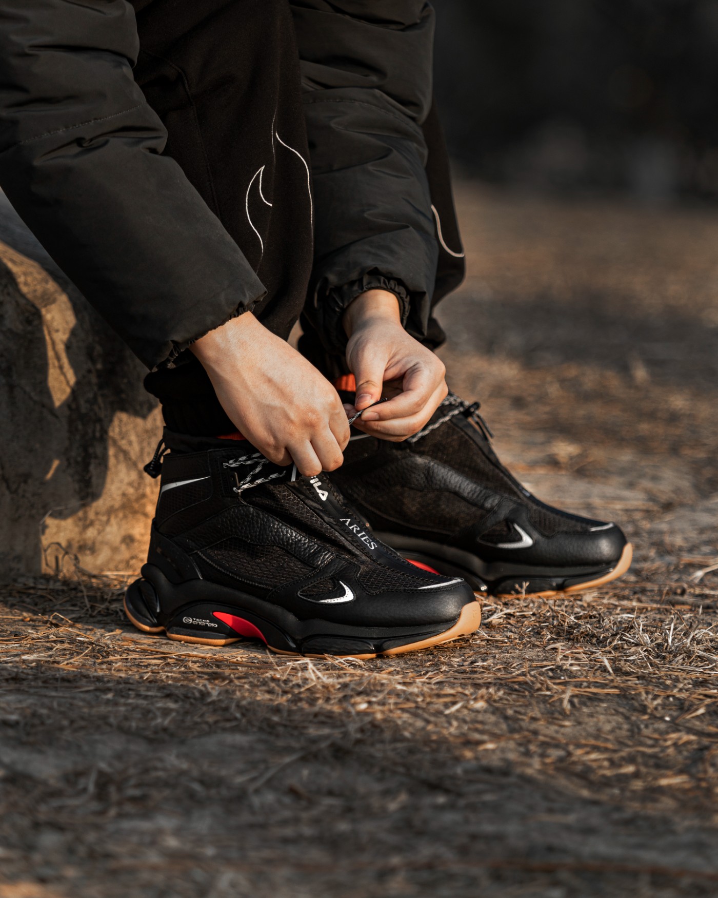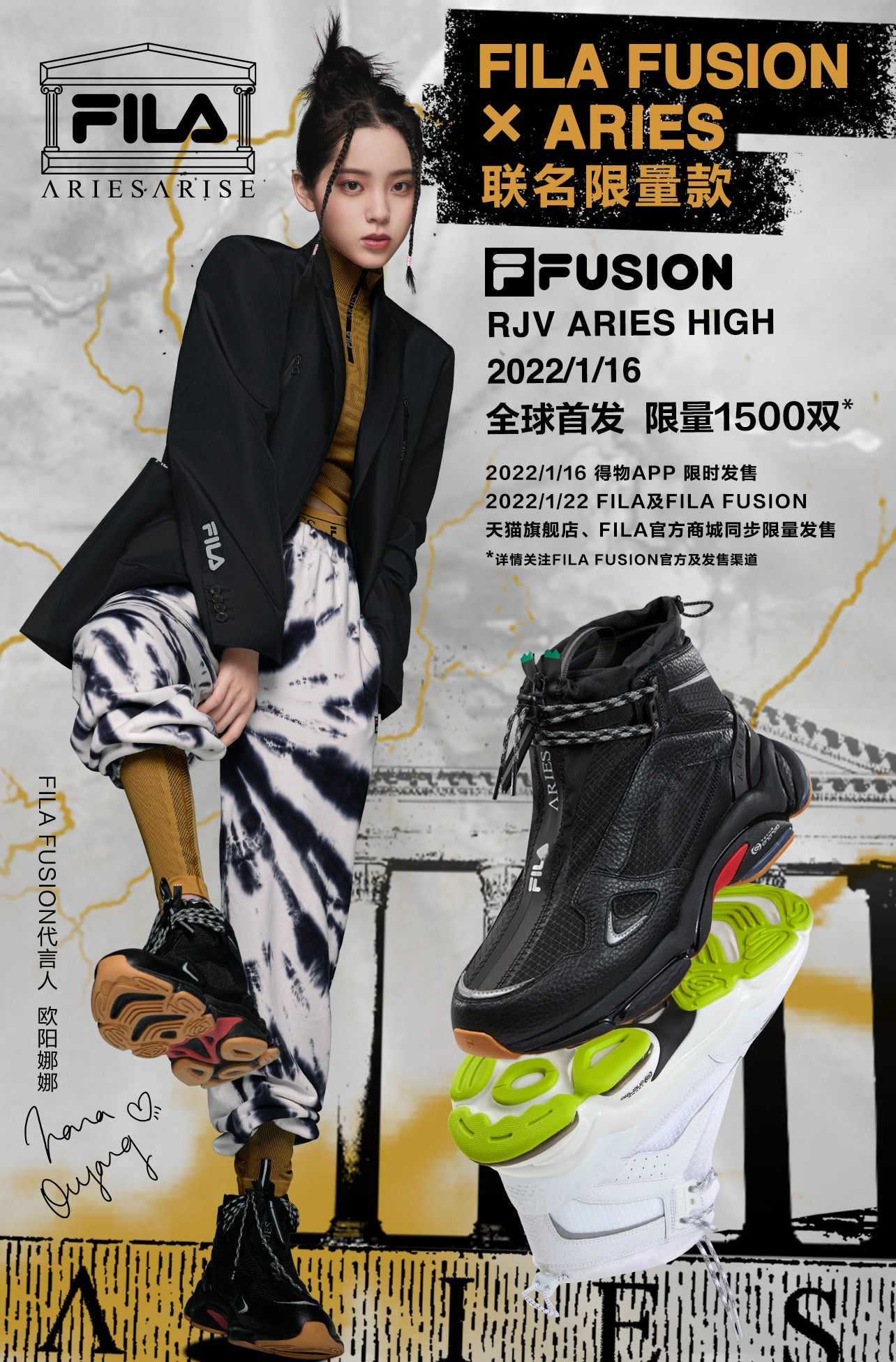 此次联名的双方分别是 FILA FUSION 与 ARIES,对于前者相信大家都不陌生,作为FILA 旗下的潮流支线,尤其是在鞋款方面都让人印象深刻。