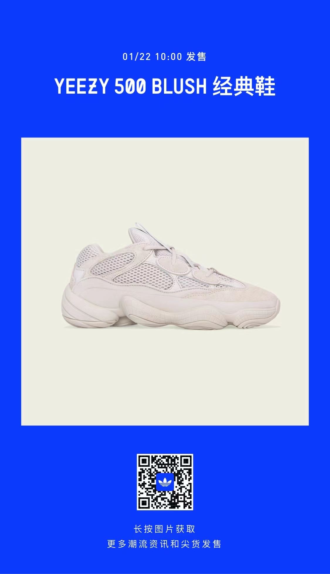 目前,全新 adidas Originals Yeezy 500 “Blush” 现已在 COMFIRMED APP 开始登记,登记截止至 1 月 22 日 9:30,时间非常充足,adidas 微信小程序也同步开启登记,发售价格为¥1959 元,感兴趣的小伙伴抓紧时间参与吧。
