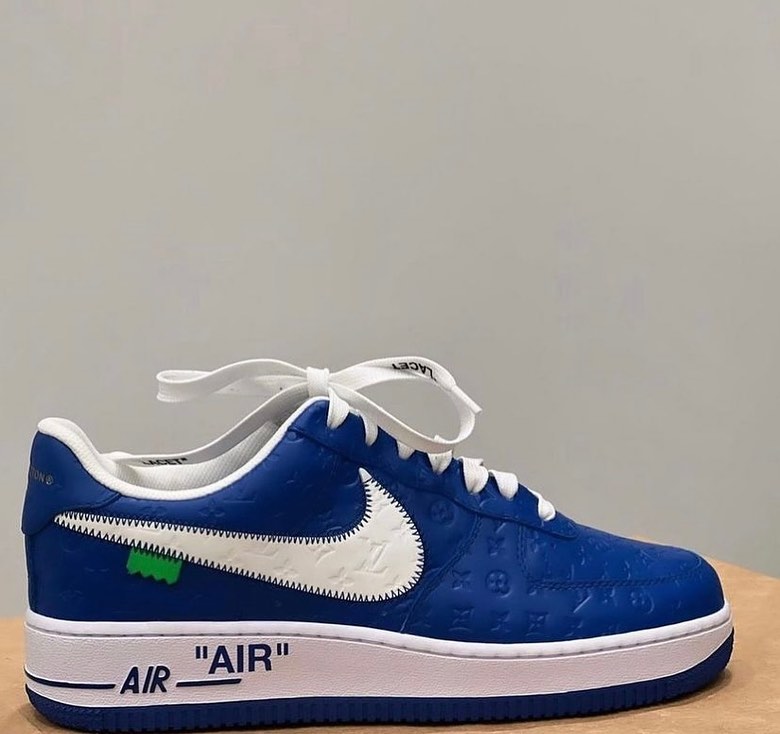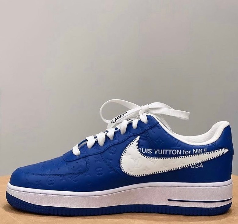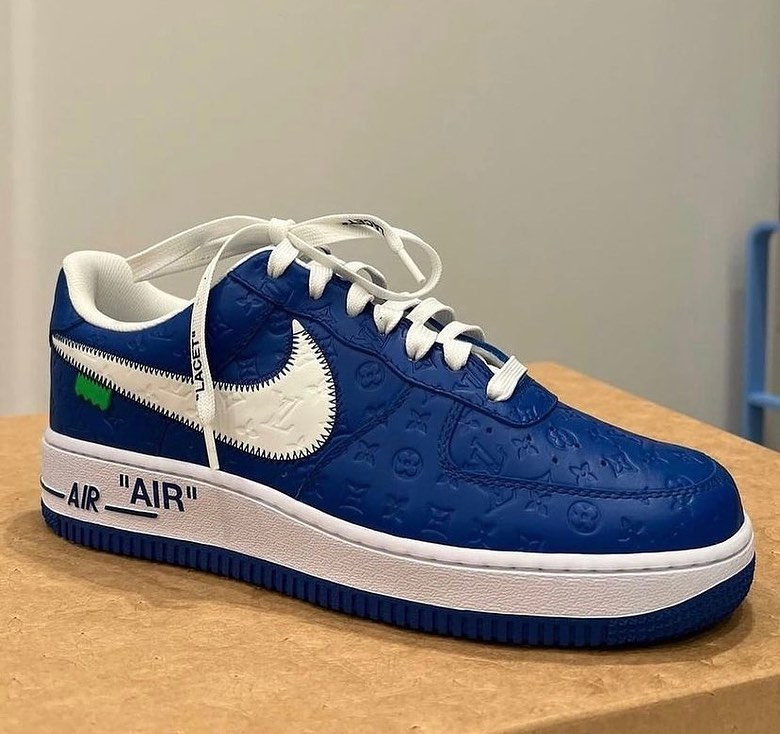设计在 OFF-WHITE x Air Force 1 的基础上加入满满的 LV 元素,鞋身布满压印 Monogram 彰显联名身份。