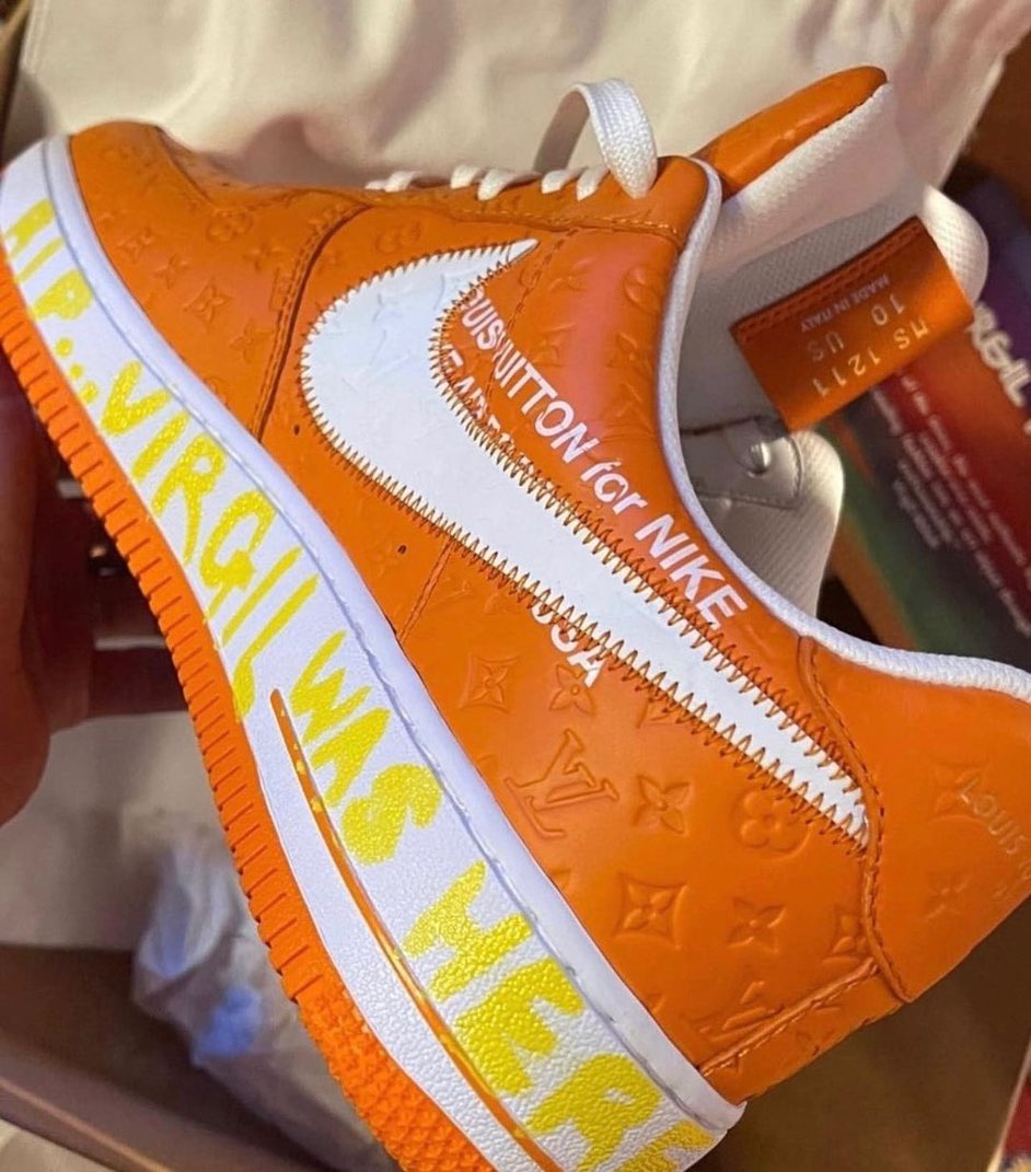 近日与 Virgil 私交甚好的知名滑板手 Lucien Clarke 率先晒出一双全新白橙 LV x Air Force 1。