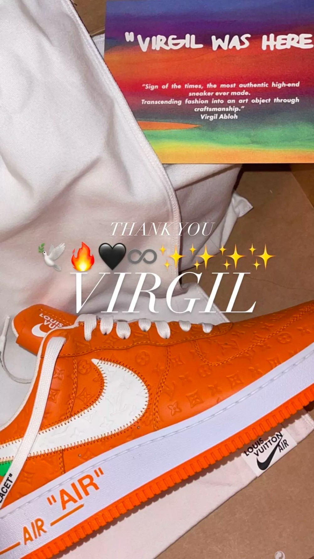 Lucien 还特意在中底内侧用黄色马克笔写出 “RIP...VIRGIL WAS HERE” 字样,以此向已故的好友致敬。