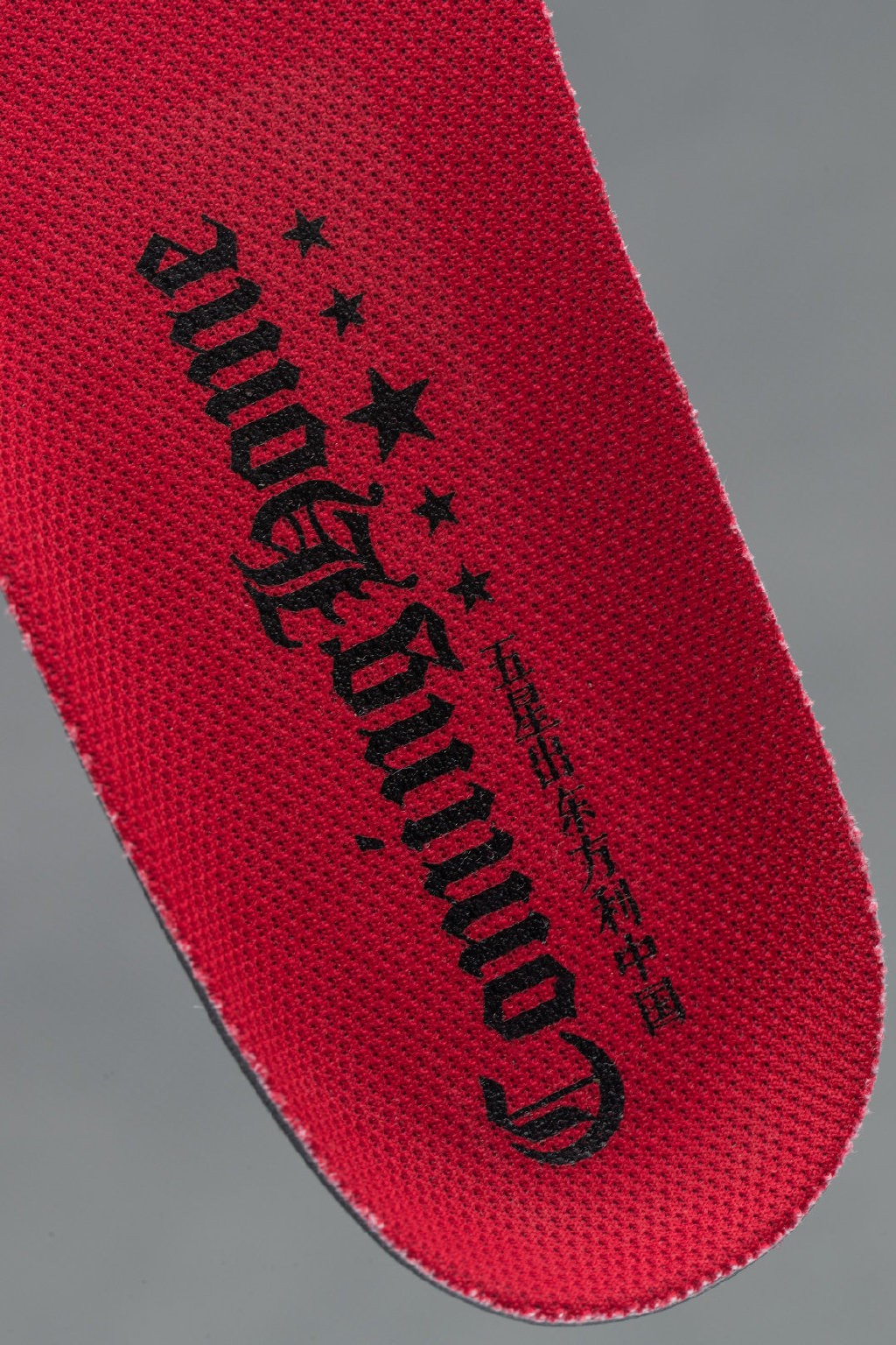 鞋垫不仅有哥特字体的 Coming Home,还有五星印花和「五星出东方利中国」字样,带来美好祝愿。