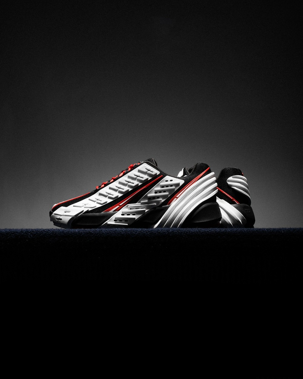 要说年度长得最抽象的鞋款,我必须得投这双 DIESEL PROTOTYPE 一票,整体以黑白两色间隔呈现,红色点缀穿插其中。