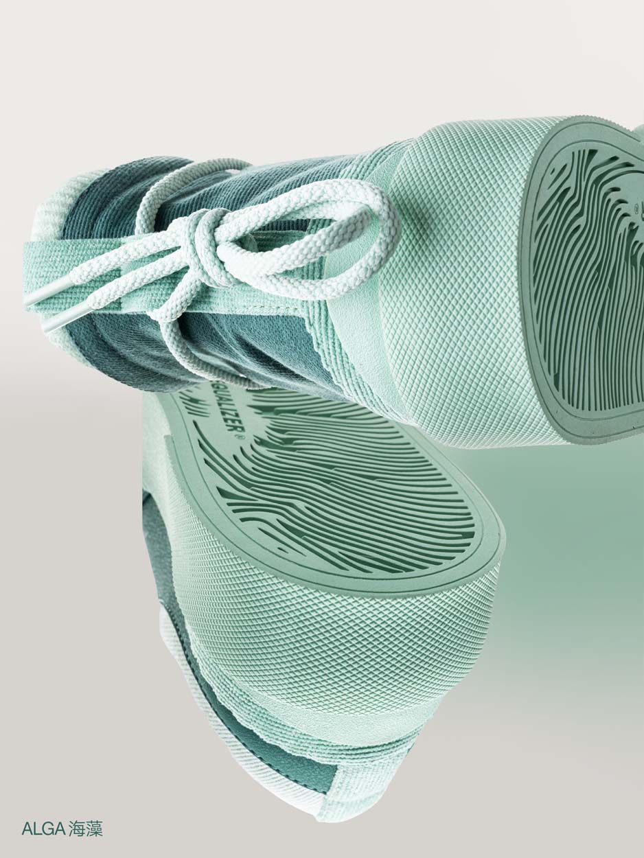 与传统球鞋不同,EQUALIZER「错版鞋」将品牌 Logo 前置,打造山形外底、搭配超厚的 EVA 缓震以及开放式橡胶立面,充分展示了品牌的创造力和叛逆的设计语言。