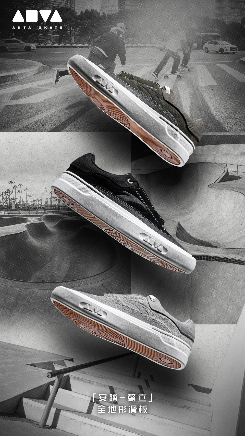 同一时间,安踏滑板系列首款滑板鞋产品「骜立」也正式上市,强调动态稳定和全地形滑板性能。