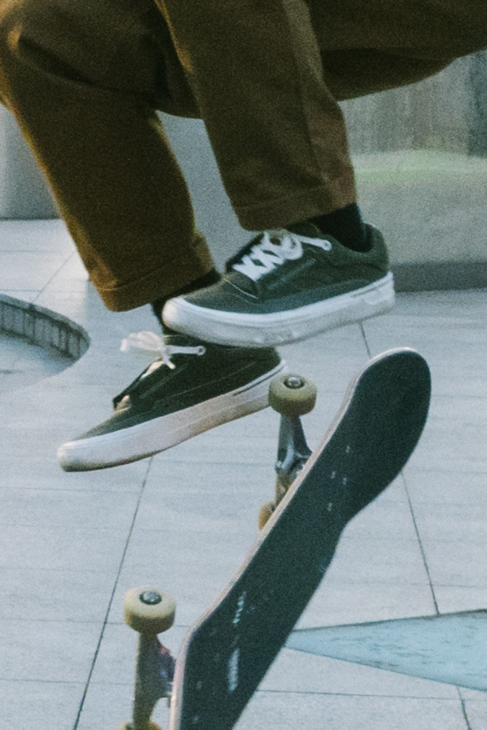 外底采用半硫化半冷粘工艺,在干燥环境下防滑性能优于同类产品,为滑手在滑板过程带来更好的感受,其稳定性和抓地力显著提升15%,让滑手们可以无惧地形限制,随时随地放胆去滑。