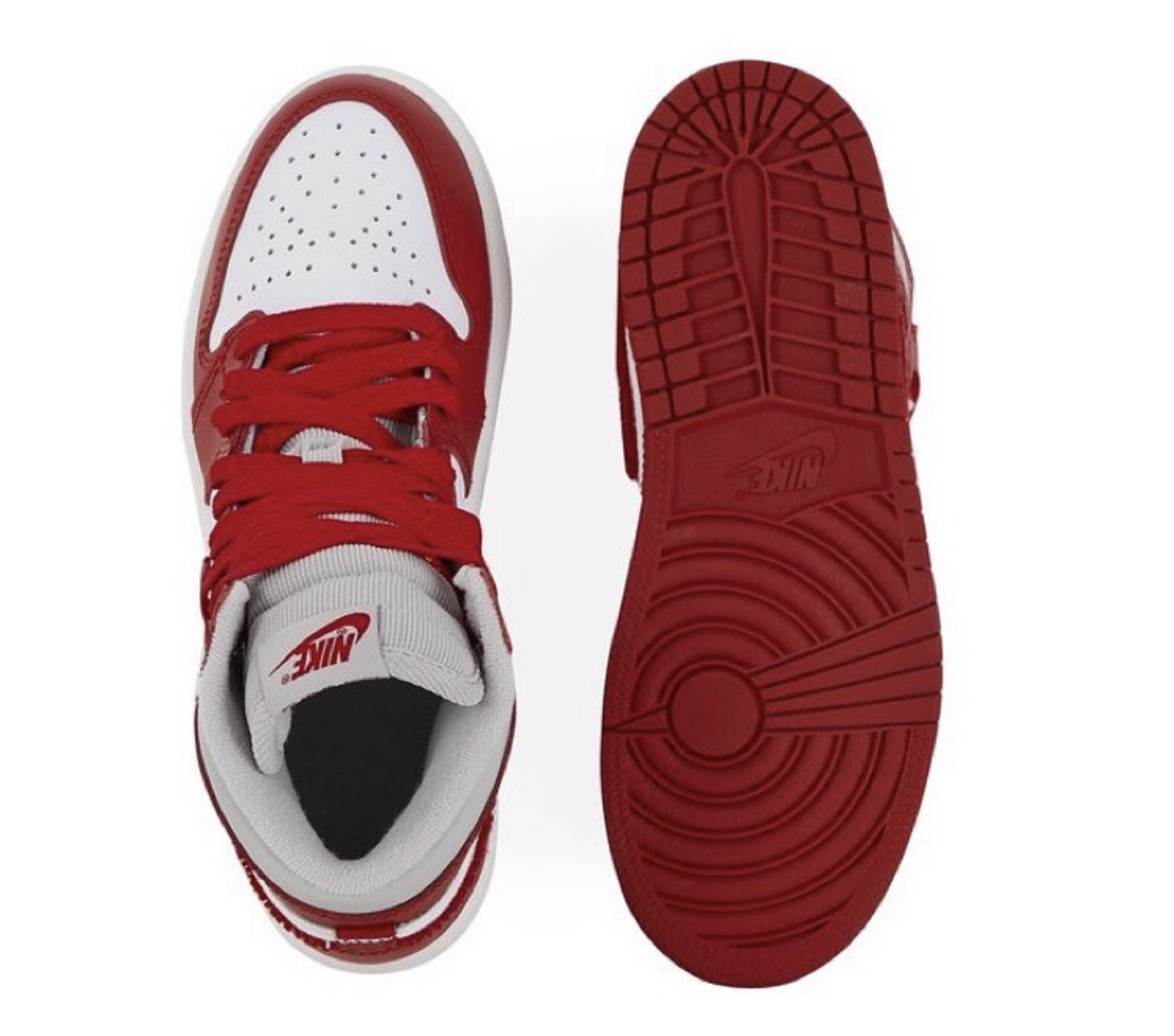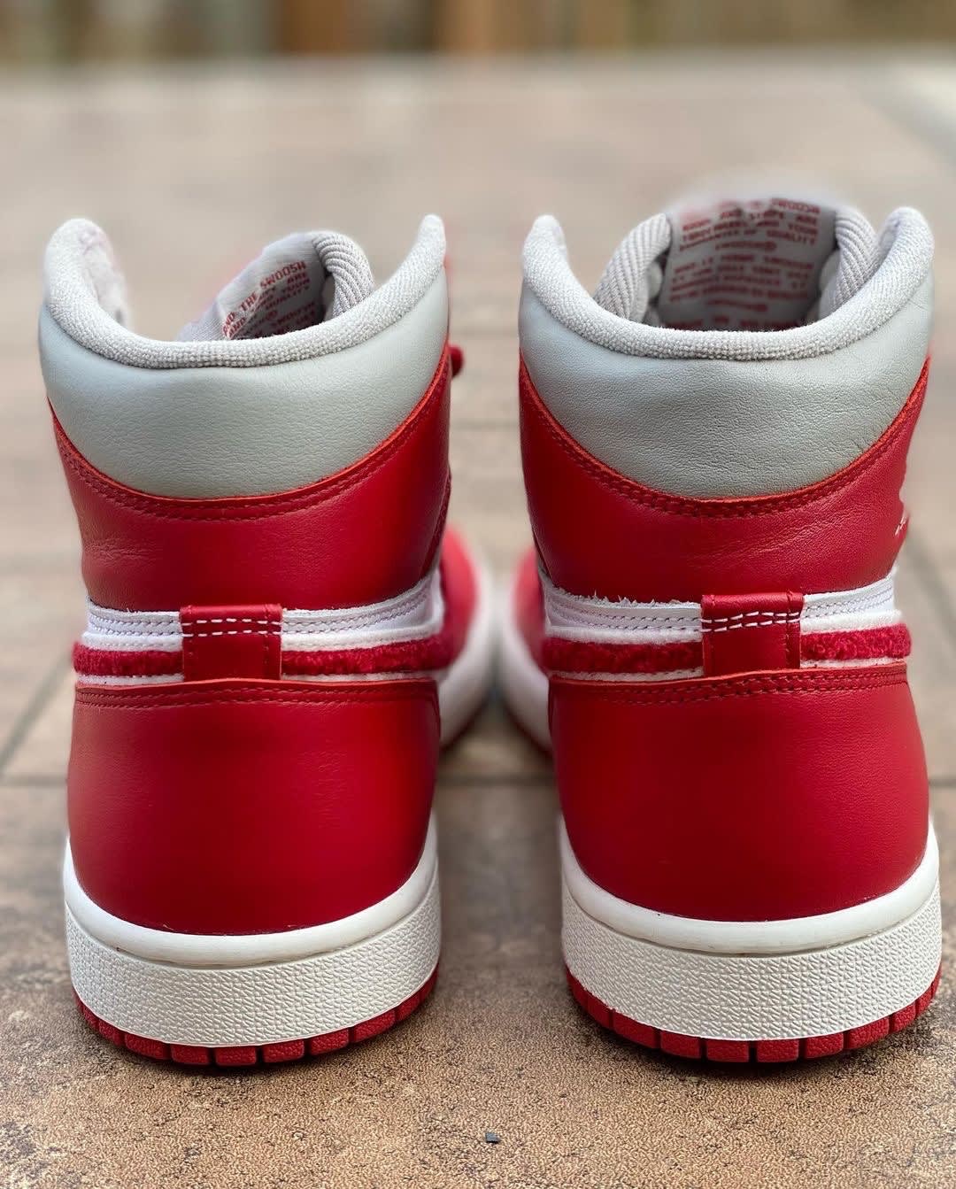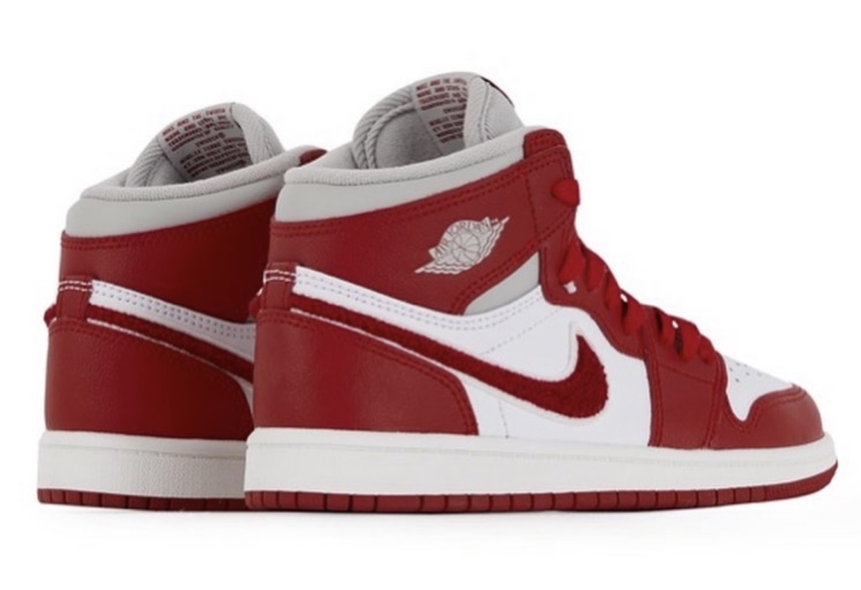 鞋面采用经典的白红配色,此款亮点当之无愧是侧面的雪尼尔材质 Swoosh。