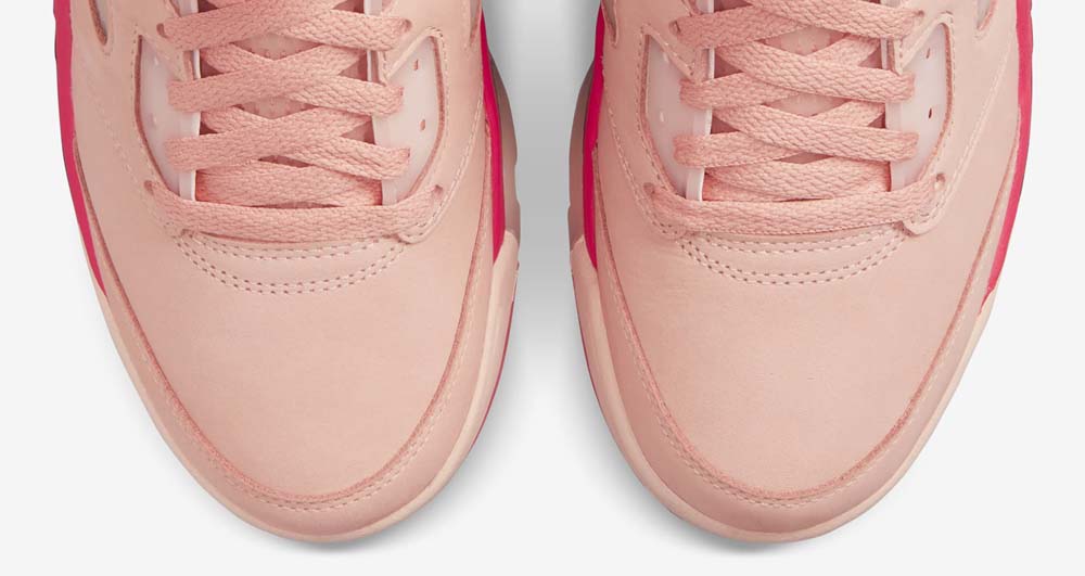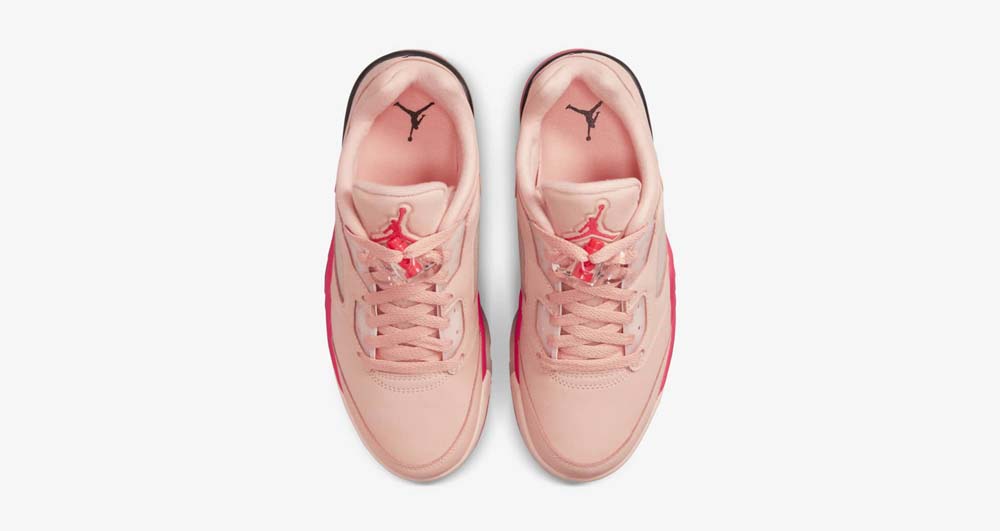 整双鞋延续 Air Jordan 5 Low 的经典造型,以大面积粉色呈现,有一种情人节的味道。