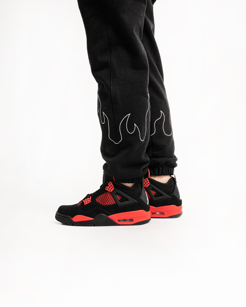 HACKMIND 重磅纯棉 刺绣火焰长裤
