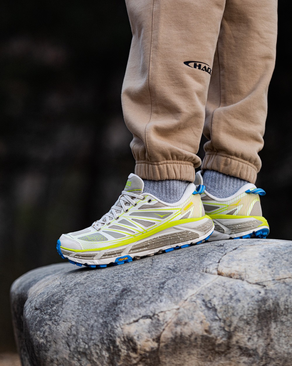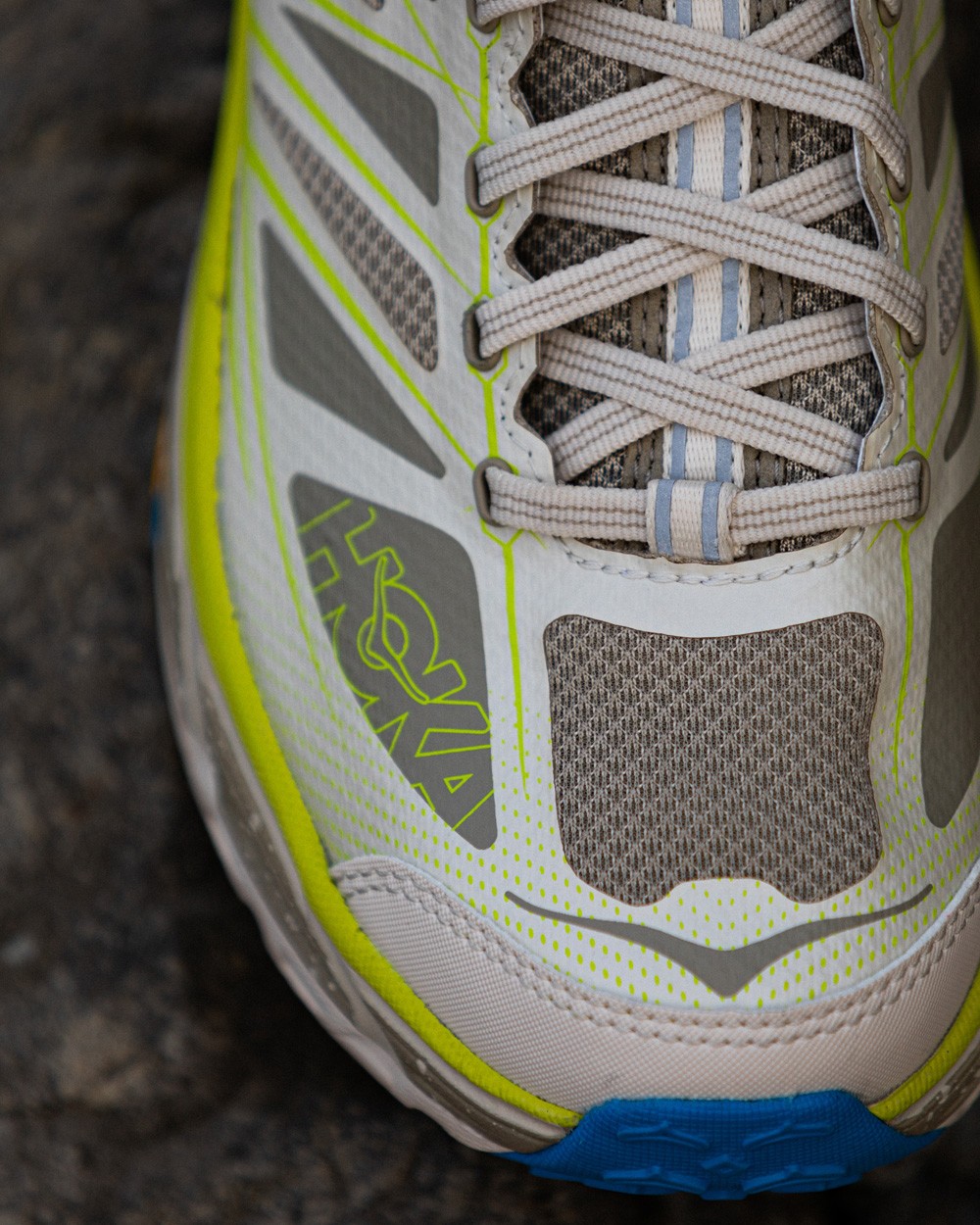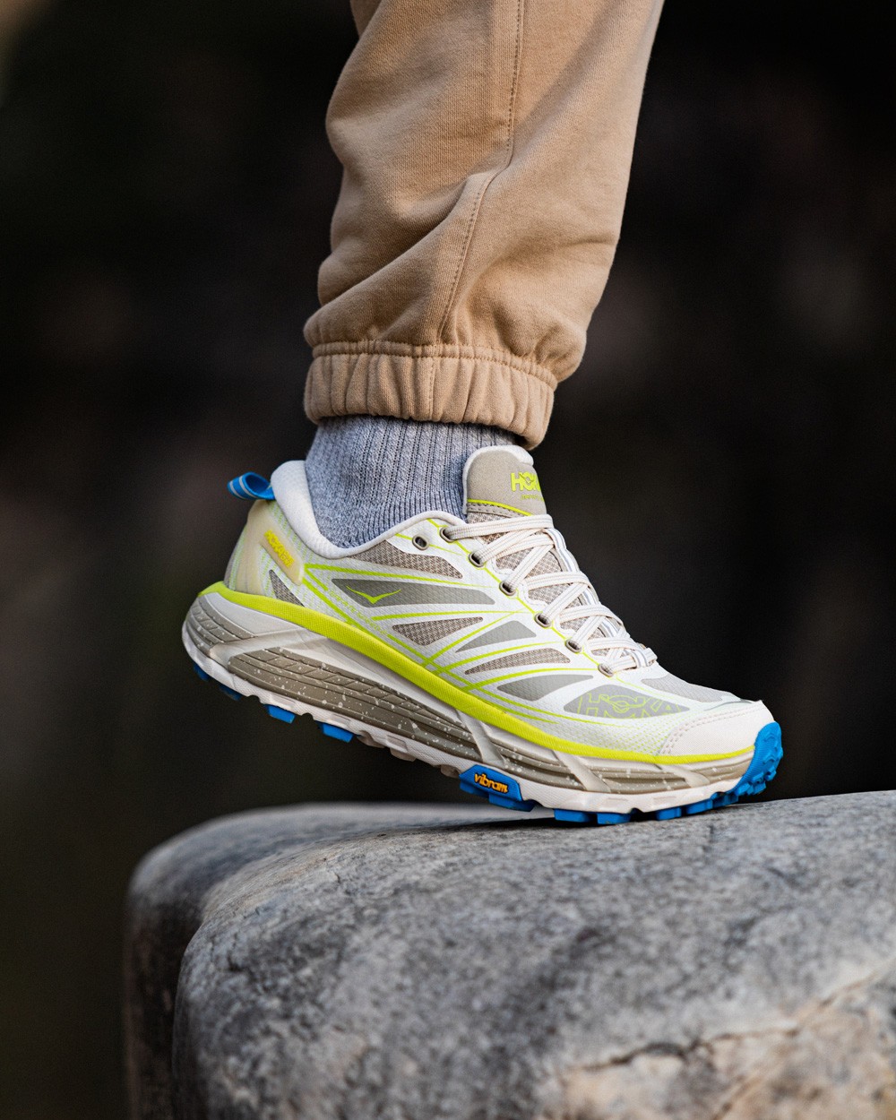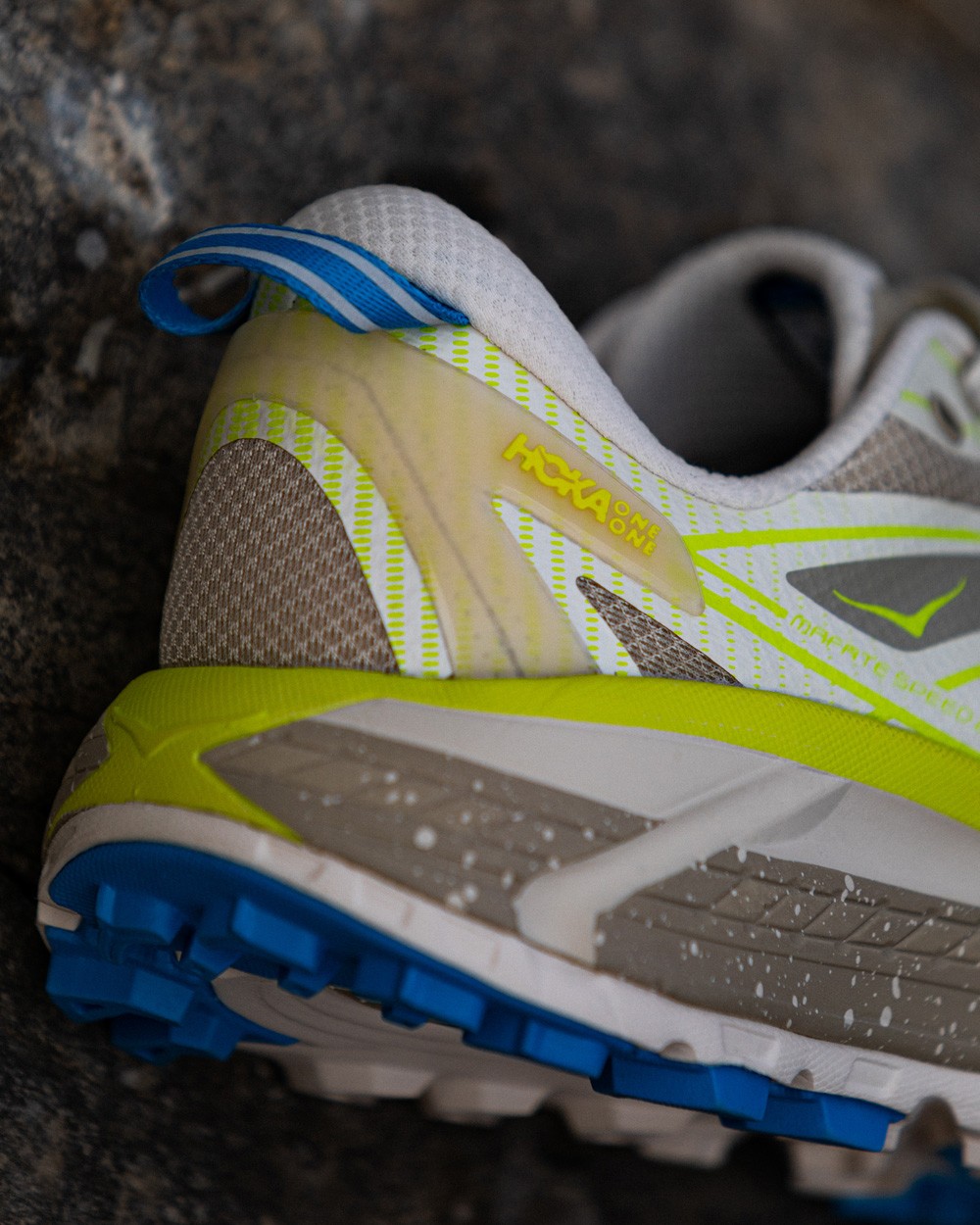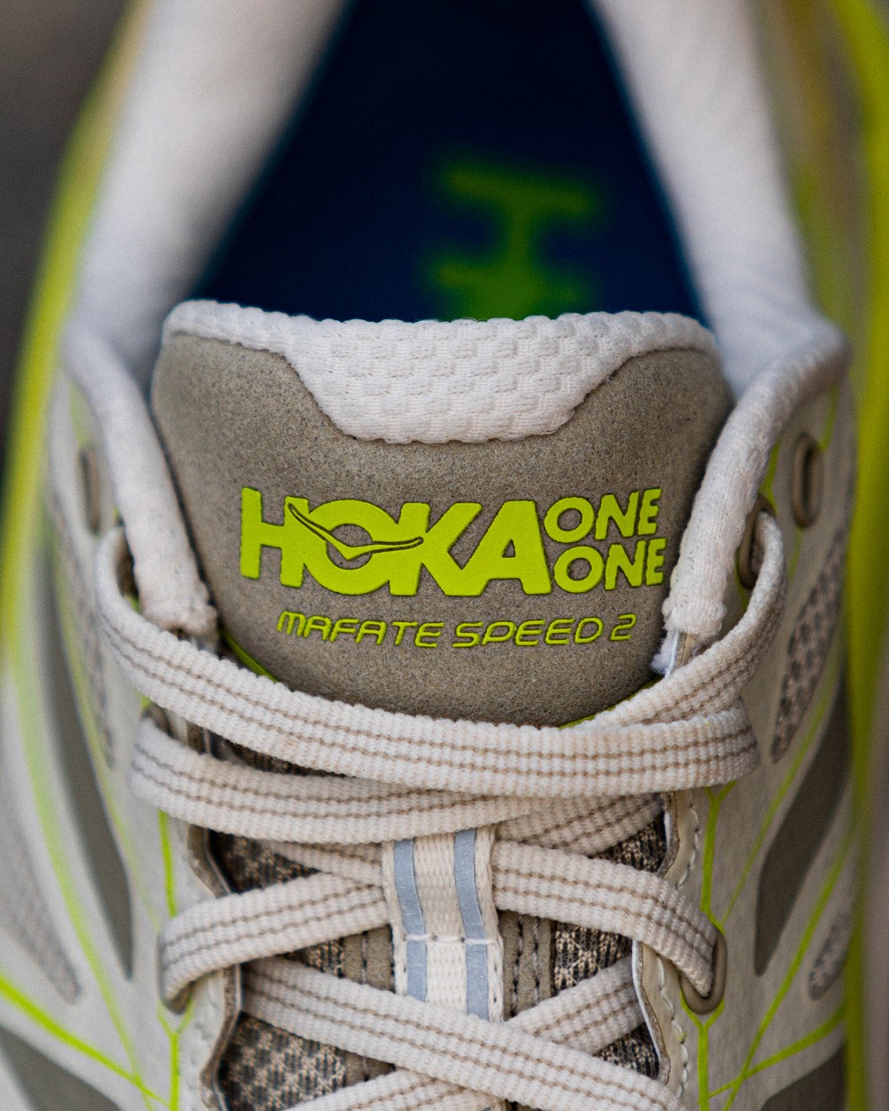 鞋舌使用大面积羊毛材质,荧光黄胶印 HOKA 品牌 Logo 以及鞋型名称都彰显了这双鞋的身份。