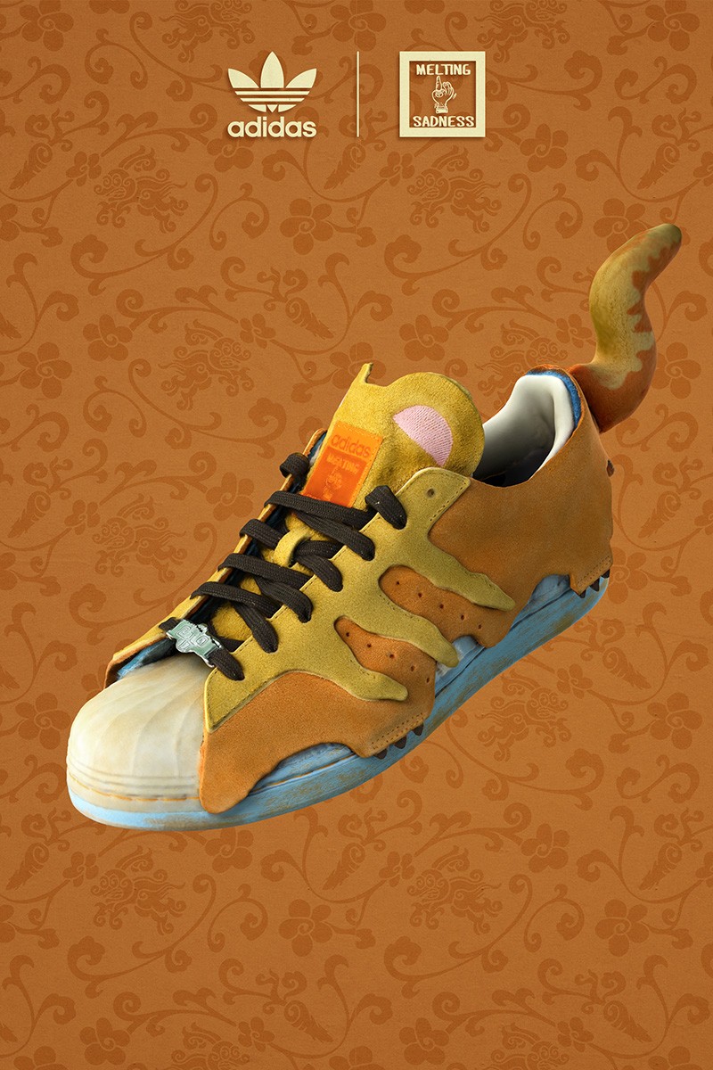 伴随春节临近,Melting Sadness 再度与 adidas Originals 联手,曝光全新一轮新品,即将于下周发售!