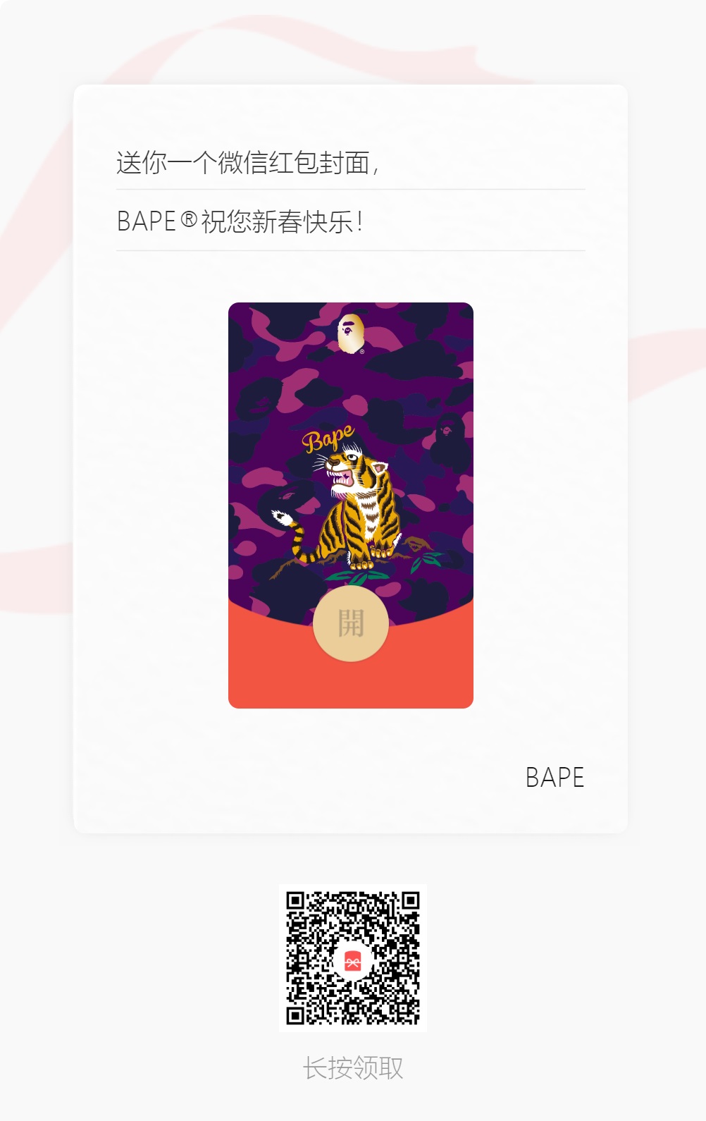 除此之外,BAPE® 今天还发布了限量 38888 份的「微信红包封面」!