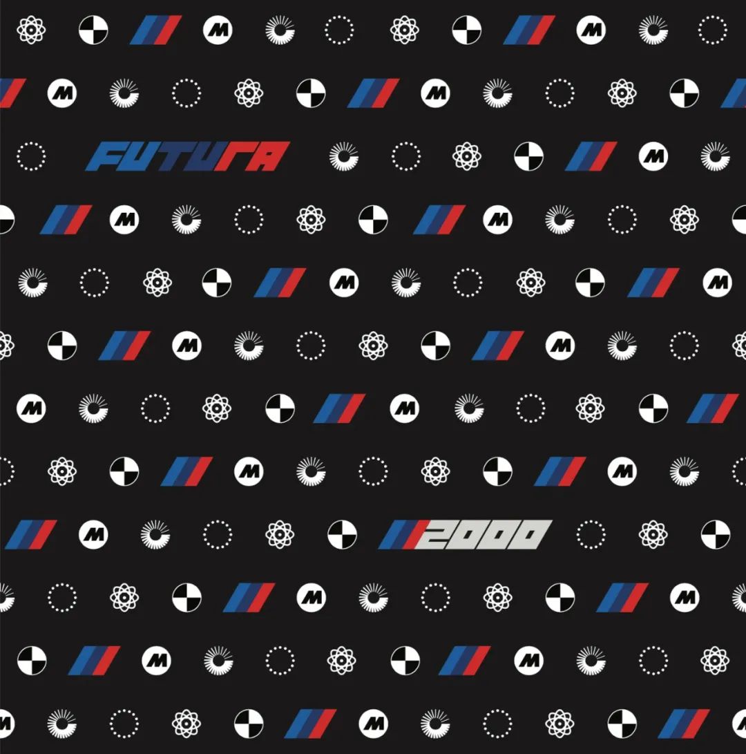 可以看到 Futura 将 BWM M Logo 与个人标志性的原子 Logo 等多个图案相结合,并以 Monogram 的形式呈现。