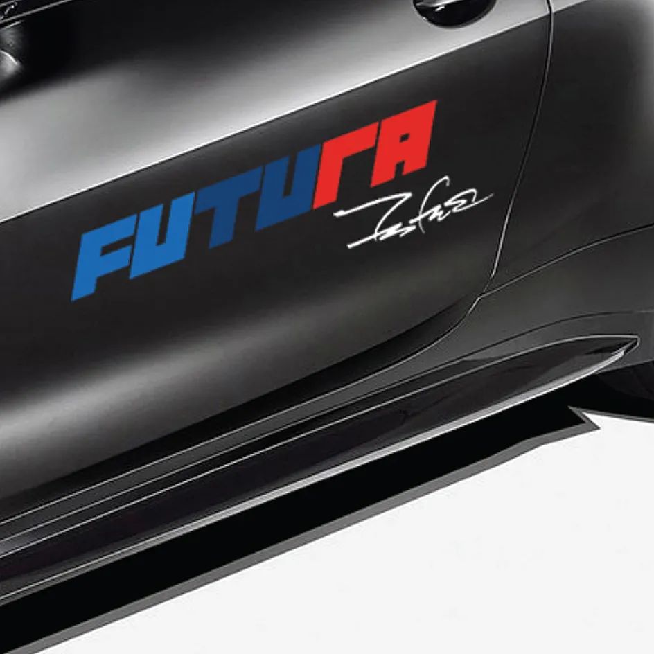 整辆车在黑色车身上涂装 Monogram,车门上还有巨大的 “FUTURA” 字样以 M logo 的色彩呈现,并且点缀有白色 Futura 手写体签名。