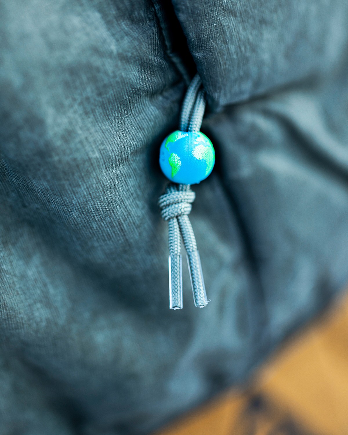 面料中含有再生聚酯纤维,拉链细节的小地球元素代表可持续的户外环保理念。