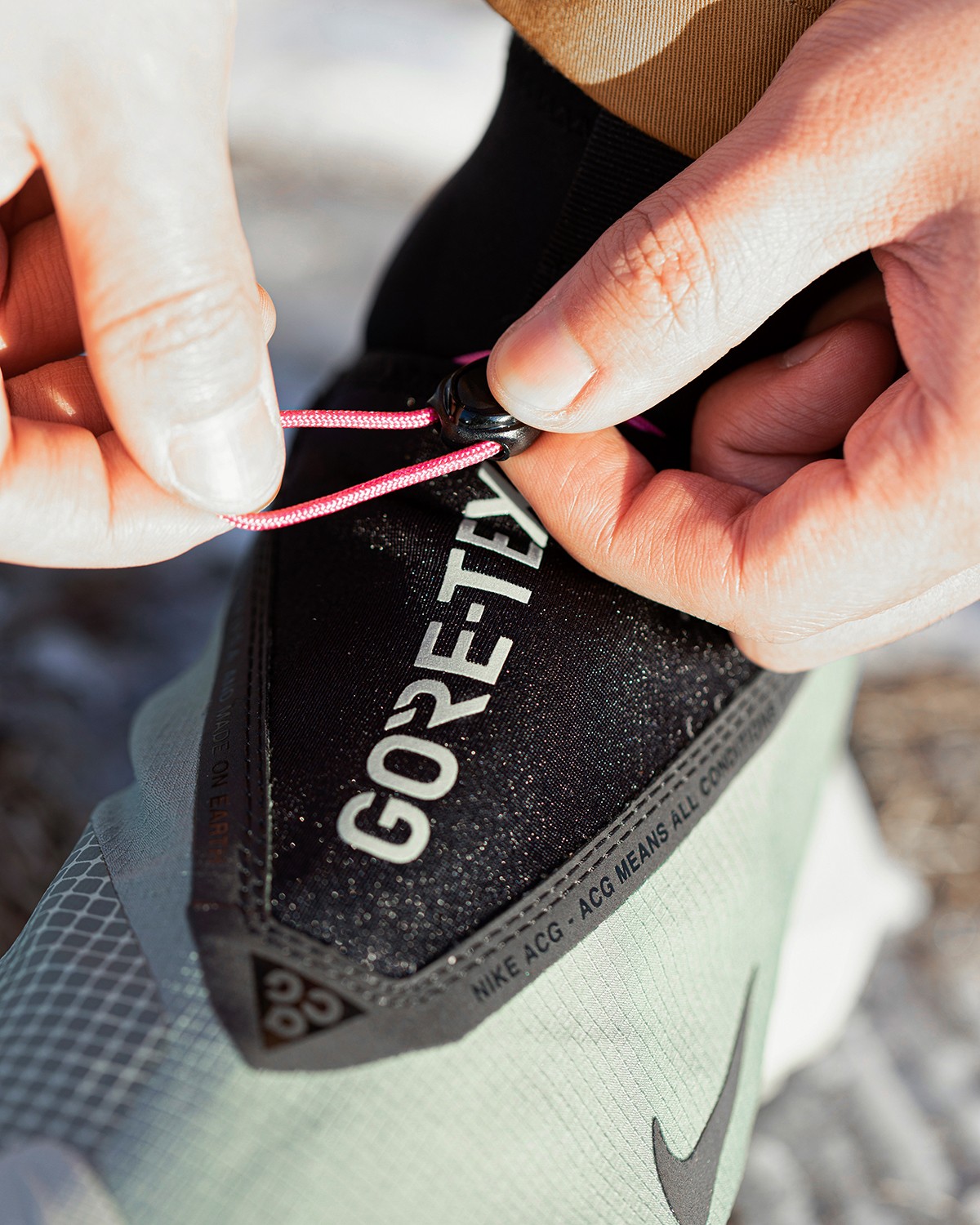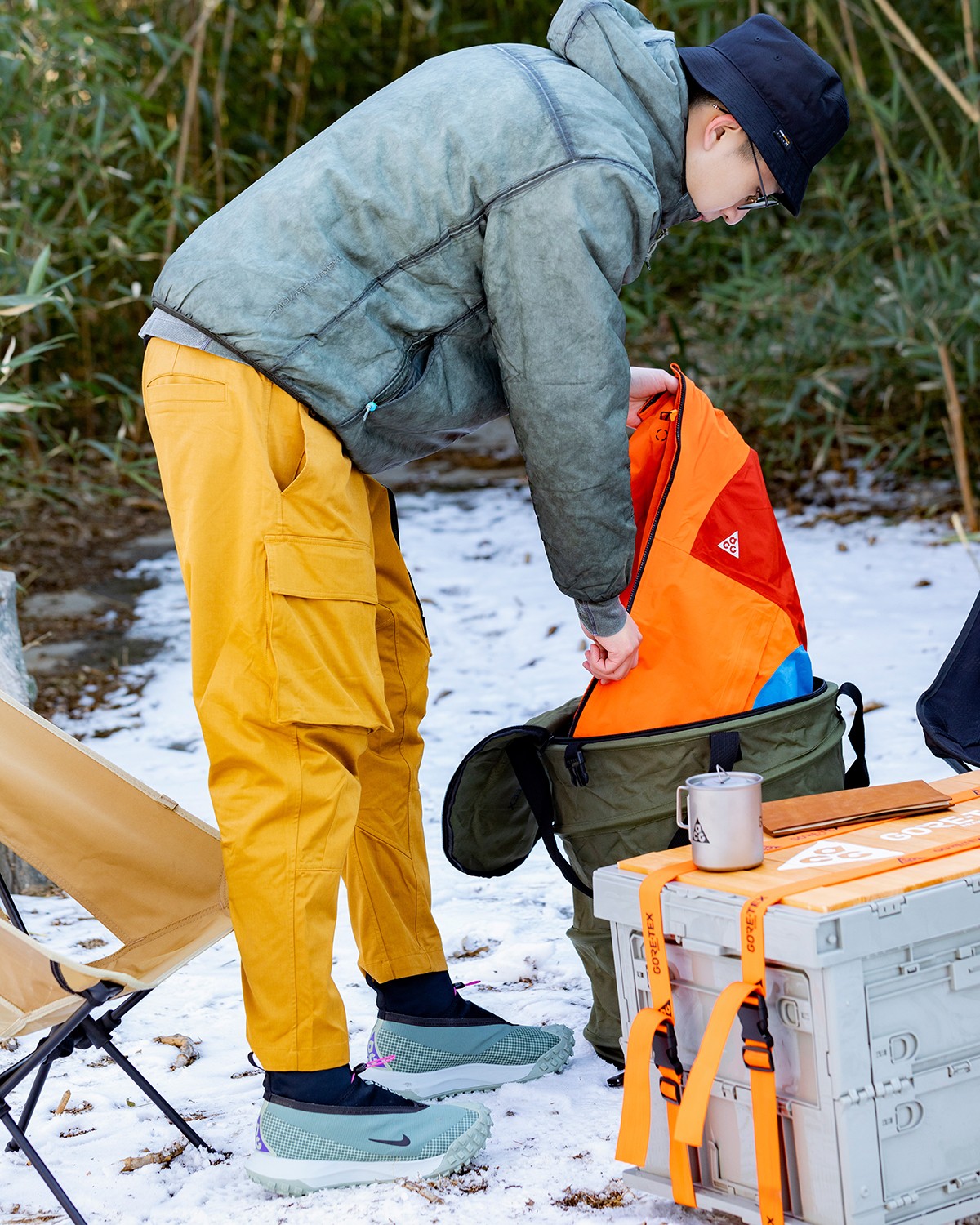 鞋款方面 Nike ACG Mountain Fly GTX 算是时下山系穿搭的不错选择。