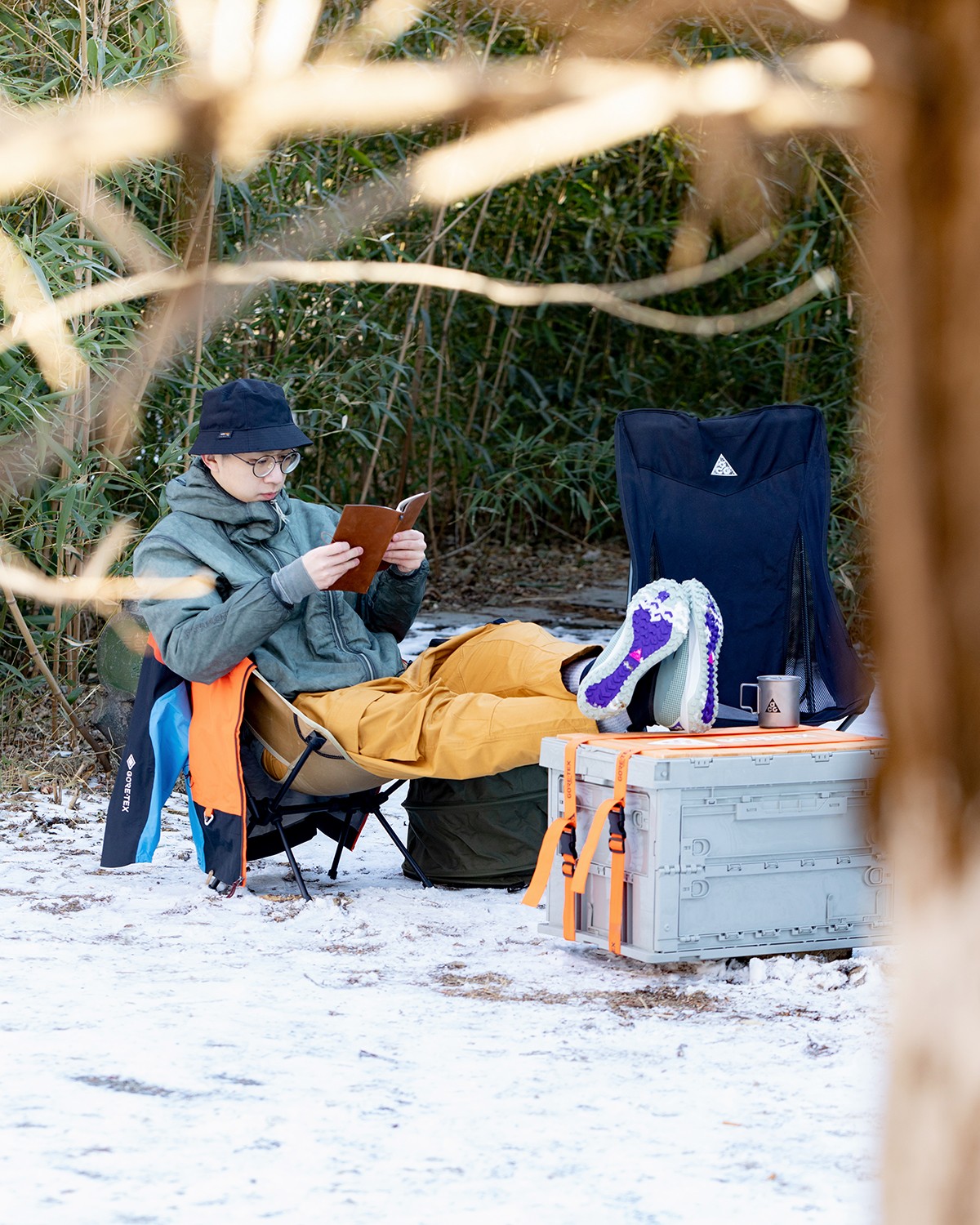 开箱除本季核心服饰及鞋款外,礼盒中还涵盖 Nike ACG 与 GORE-TEX 定制的储物箱、折叠椅、吊床、收纳桶、水杯等多样实用的户外露营装备,超丰富。