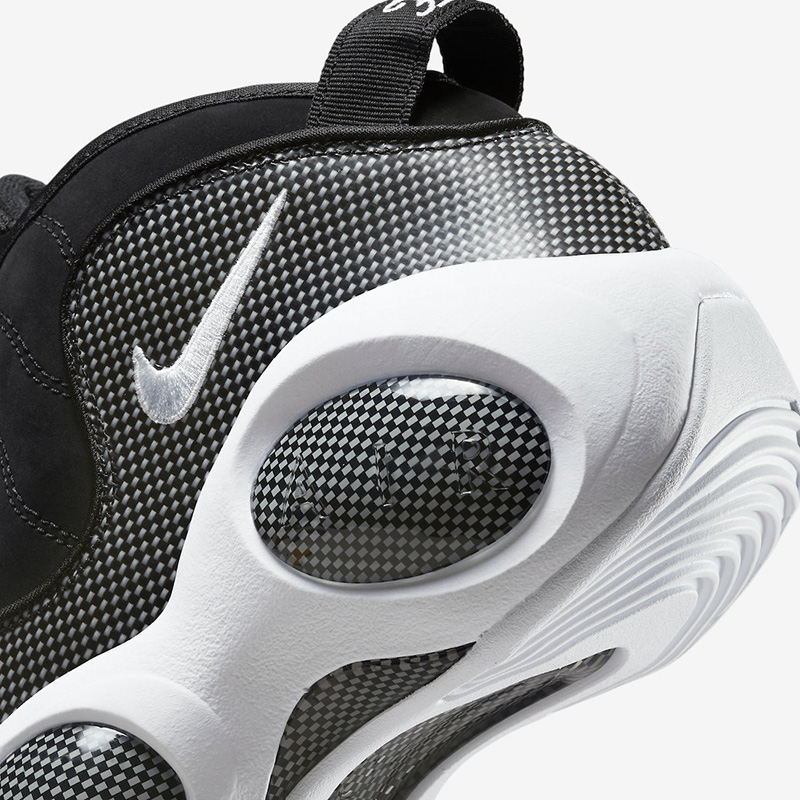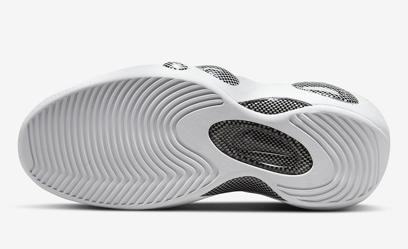 黑色麂皮辅以碳纤维纹路装饰,外底采用纯白色调反差示人。外底裸露 TPU 稳定片,中底内嵌 Zoom Air 气垫,实战性能扎实出色。