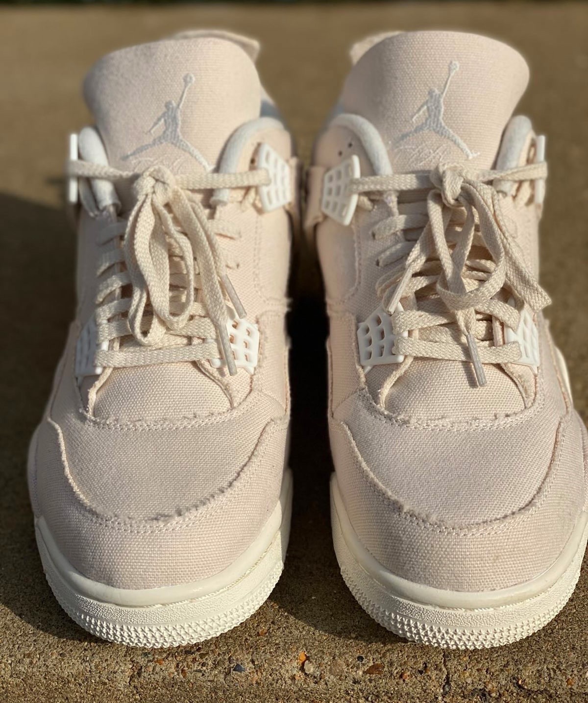 不容易打理当然也是这双 Air Jordan 4 WMNS “Canvas” 附带的 “福利”,相比于皮革材质的小白鞋,这双帆布小白鞋确实更不耐脏,但由此带来的「岁月感」或许别有一番风味。(pic via Chris Colgan)