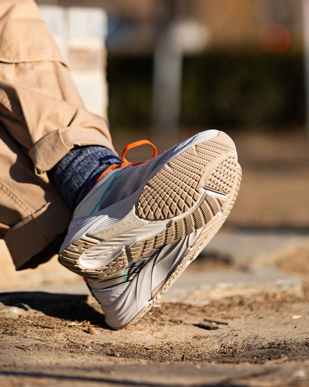 从鞋底延伸至鞋面的超大安踏 Logo,酷似凶猛的虎爪。
