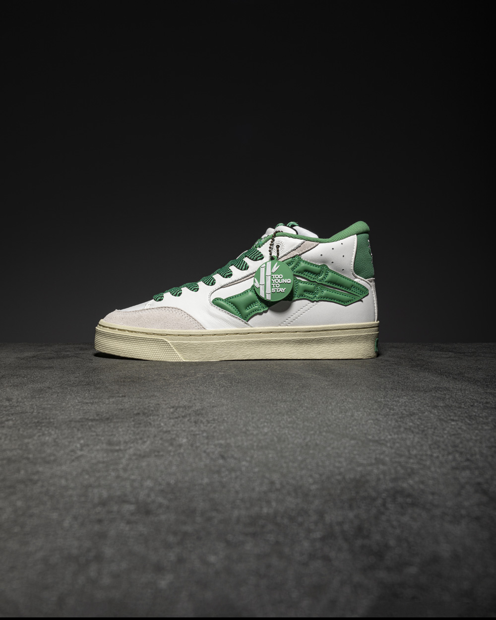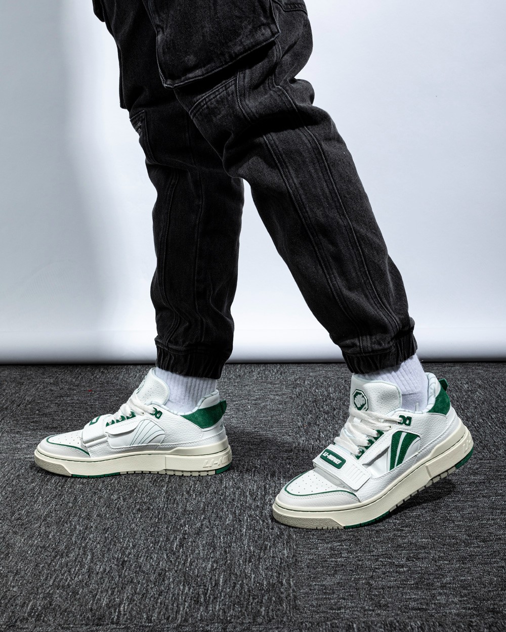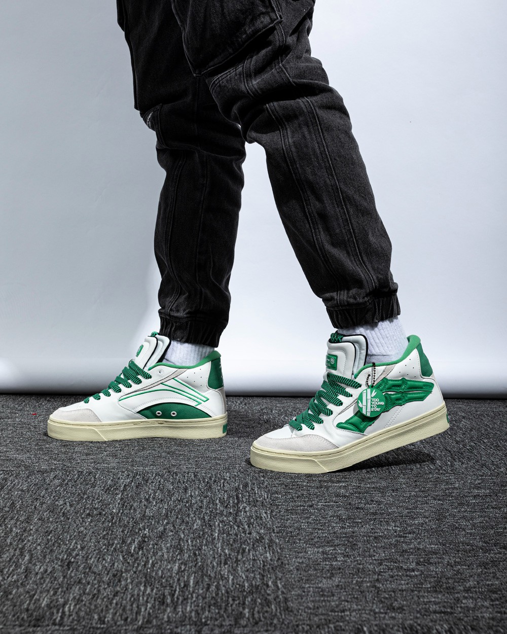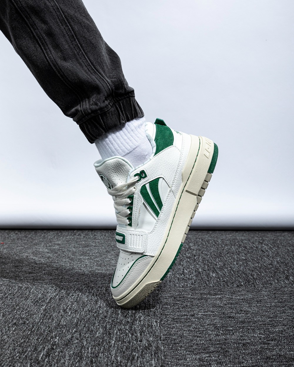 另一款休闲鞋则是近期主打的新秀 Rookie,以复古篮球鞋为灵感打造,白绿双色装扮兼具街头感与高级感。