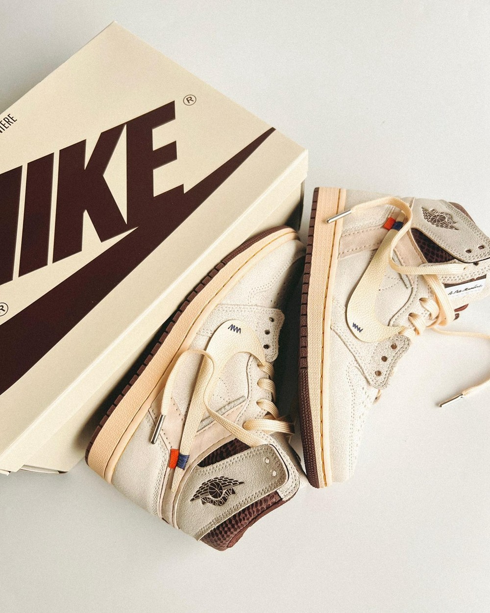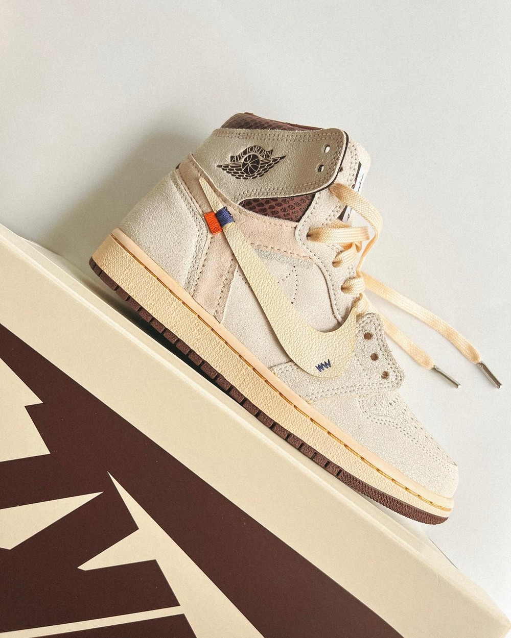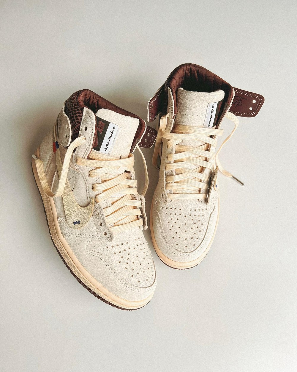 鞋款外形主要以 Off-White™ x Air Jordan 1 为主,并融入 A Ma Maniére x Air Jordan 1 的元素。