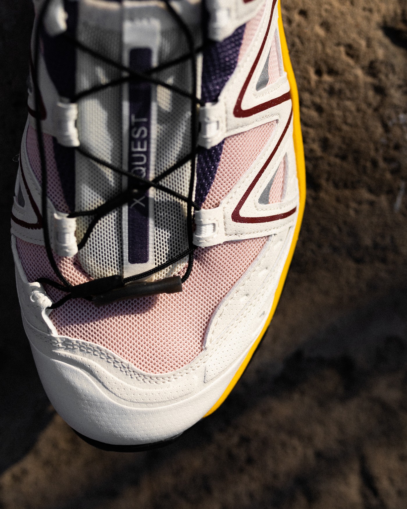 此次带来的全新鞋型名为 Salomon XT-QUEST,大胆将经典鞋型解构、融合带来全新鞋型。