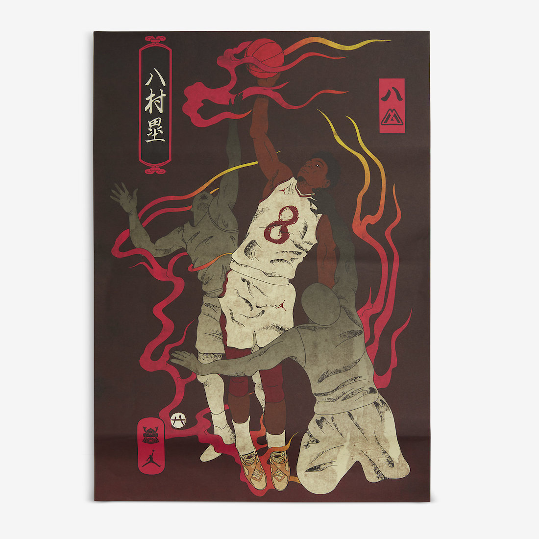 鞋垫上融入日本风格绘画以及篮球的元素。