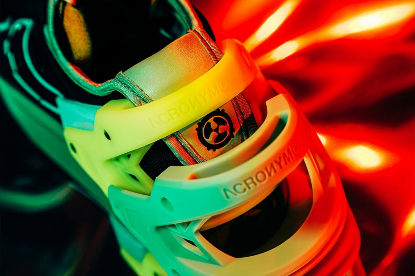 同样以「吉利服」为灵感,分离式拉链设计、特殊字体、符号,都释放出浓郁的 ACRONYM 气场。